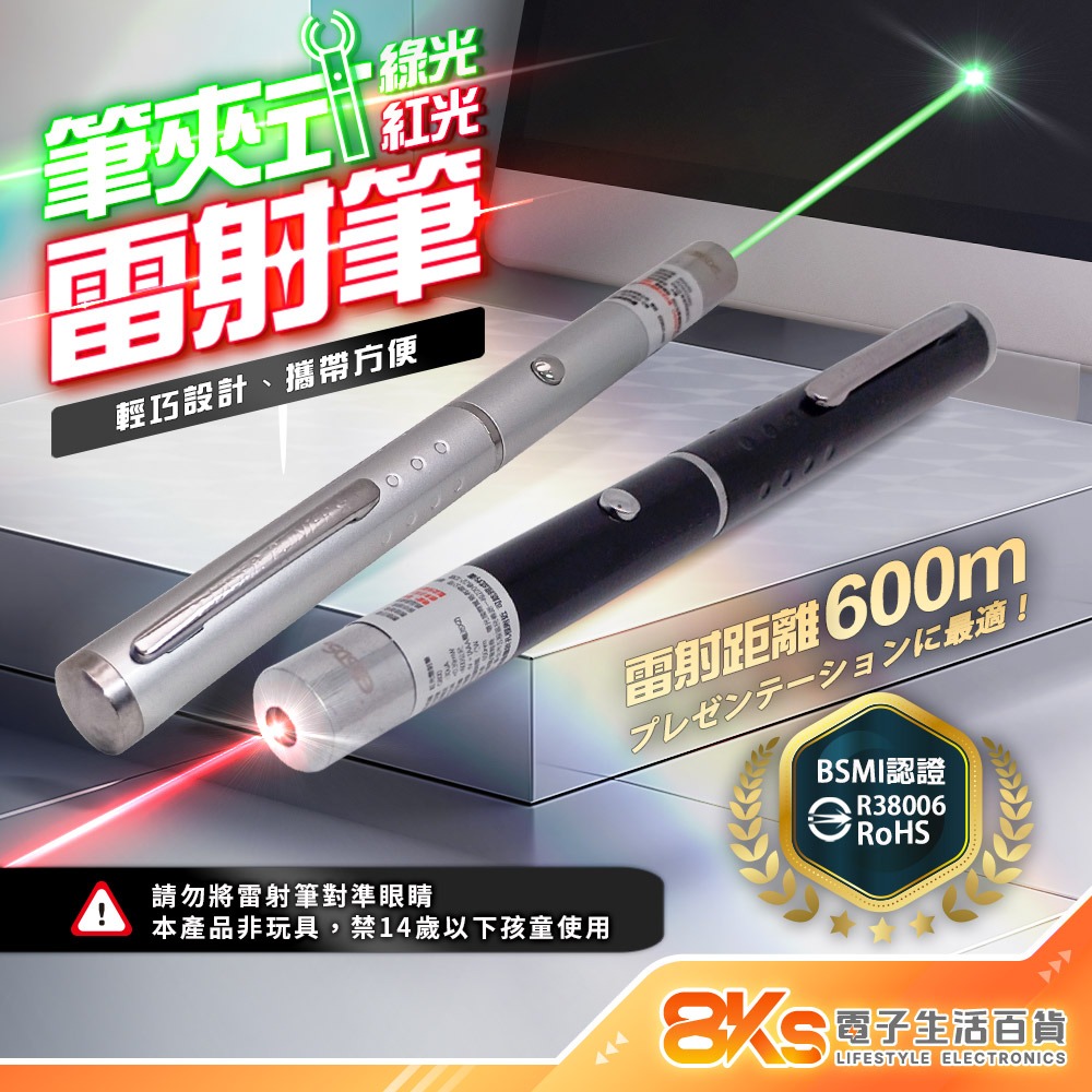 《BSMI檢驗》雷射筆 紅光、綠光 距離600公尺 筆夾式攜帶方便 適用簡報、教學場所等 BSMI驗證R38006