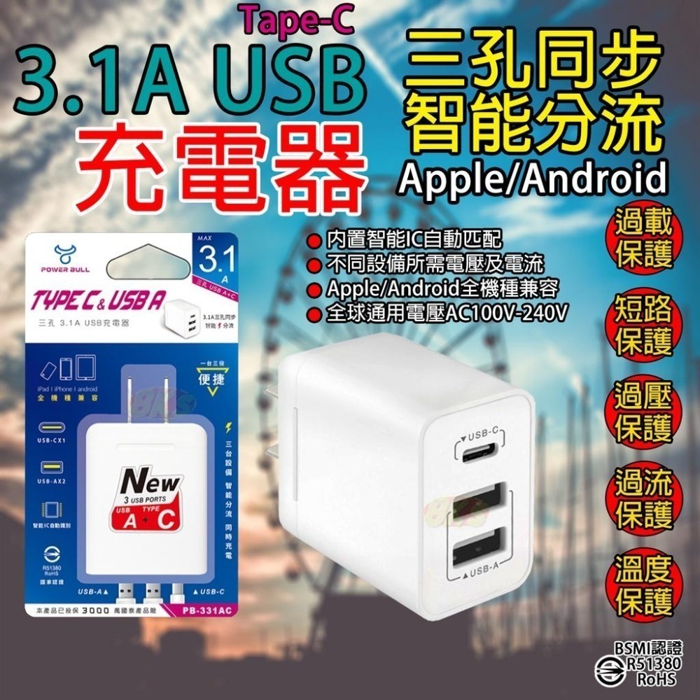 USB A+C3.1A智能自動分流