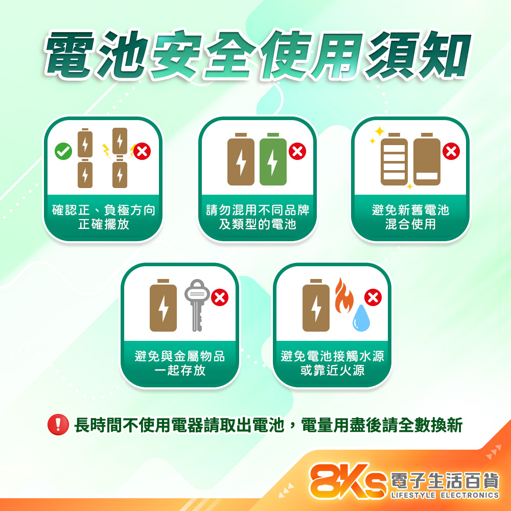 ⏺為避免短路,請勿與金屬類發生碰撞(如電池漏液、變色、變形等異常時,禁止使用)