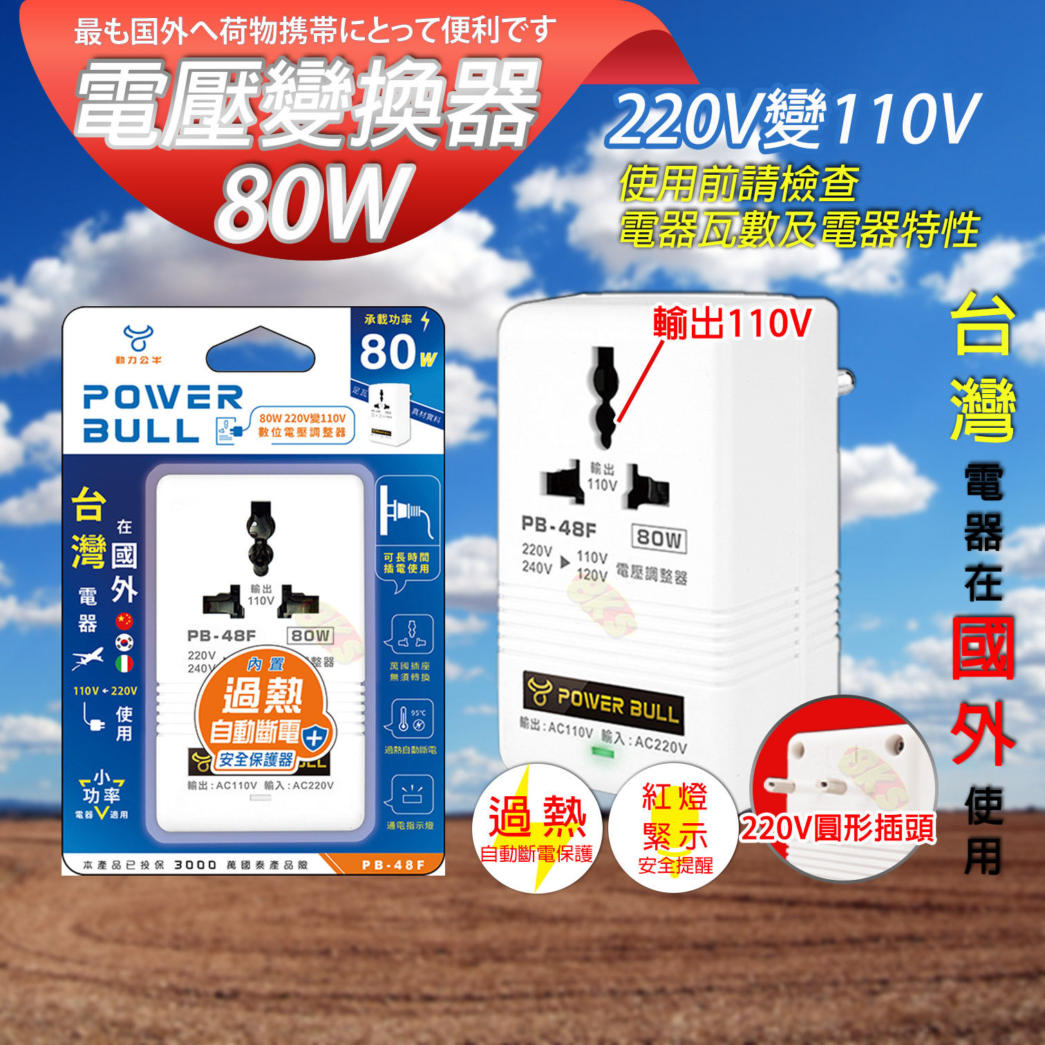 110V變220V 80W(過熱斷電) (請使用於安全負載65W以下)