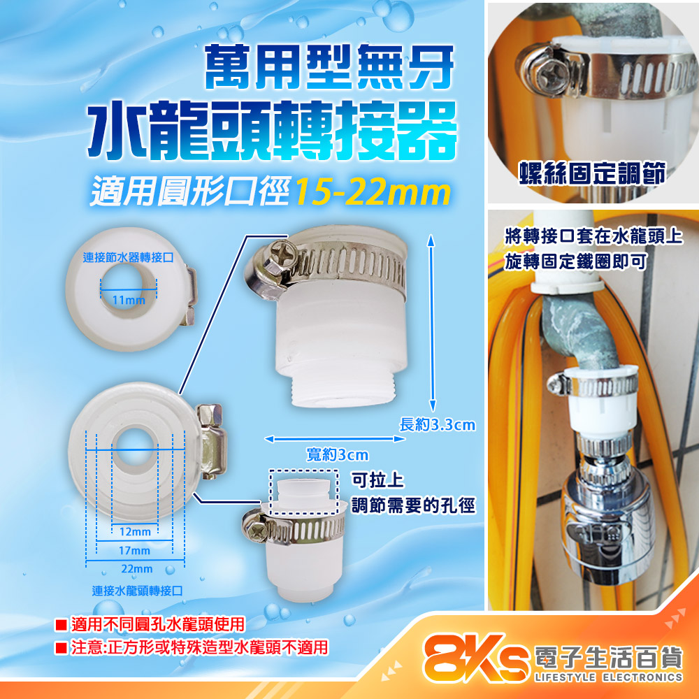 1.水龍頭需有內螺紋或外螺紋,無螺紋需另外自行購買通用接頭亦能安裝使用