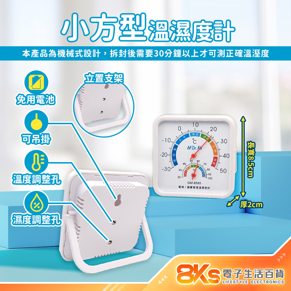 7.產品因機械式設計,拆封後須經過30分鐘以上才能測得正確溫溼度