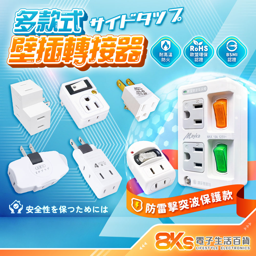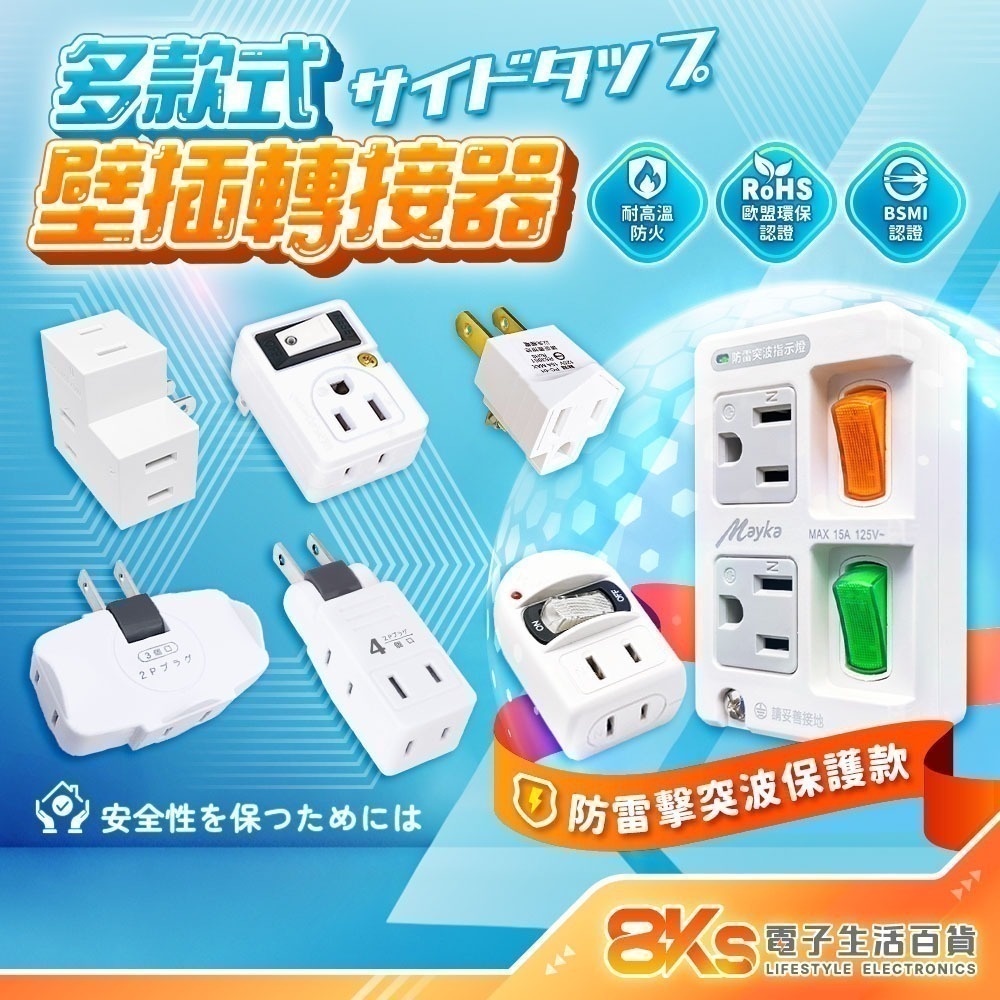 《附發票》多款式壁插 轉接器 2開2插 1開2插 防雷擊SL-2201 3孔轉2孔 分接器 外銷日本 BSMI認證