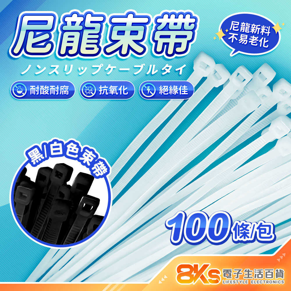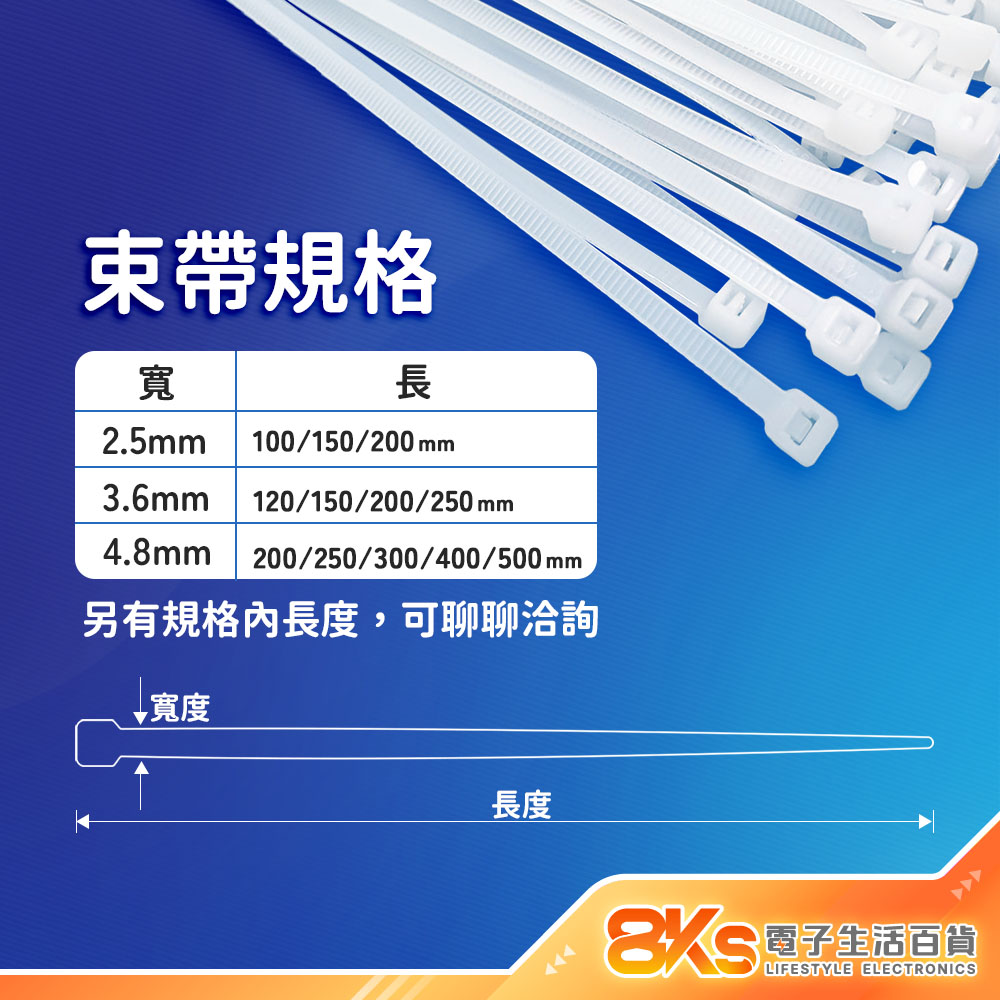 尼龍束帶 顏色:黑、白 2.5mm/3.6mm/4.8mm 1包100pcs 扎帶 束線 捆線帶 綁帶 自鎖式