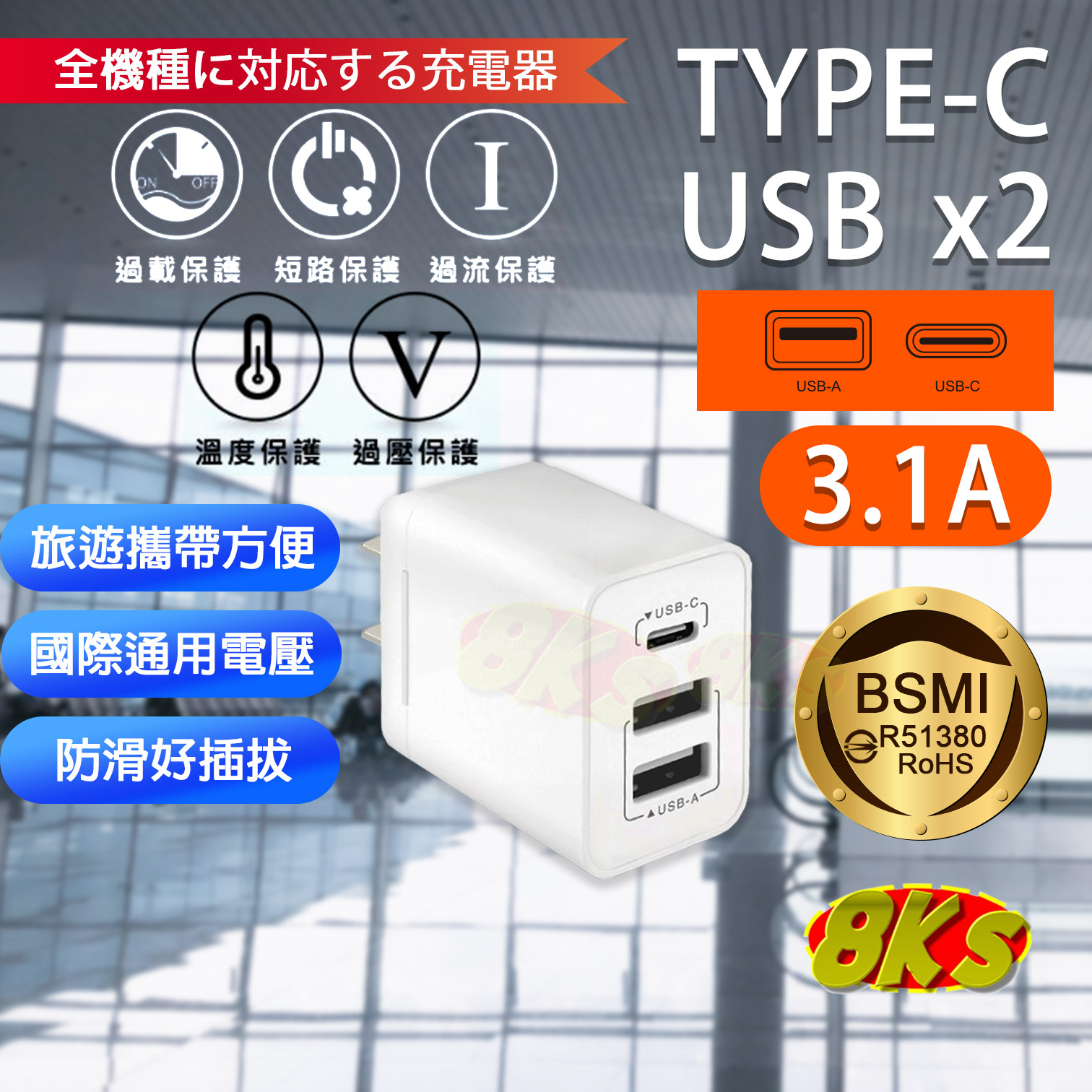 輸出電流:DC 5V/ 3.1A USBx3 三孔最大輸出3.1A