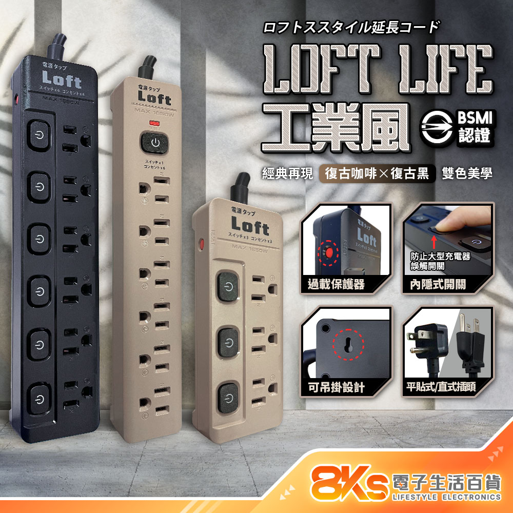 🟫復古咖啡/黑-一開六插3芯過載保護-1.8m