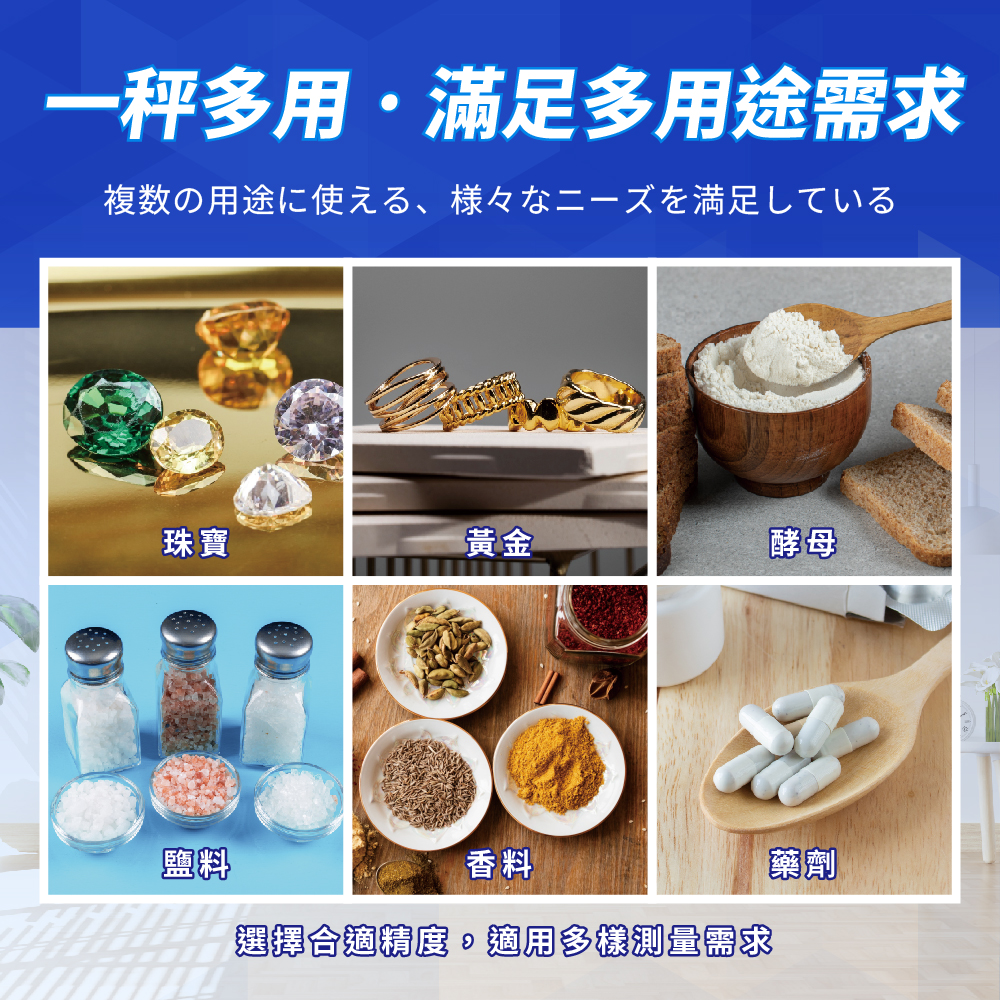 🔹適合用於:珠寶、黃金、酵母、鹽料、香料...等秤重
