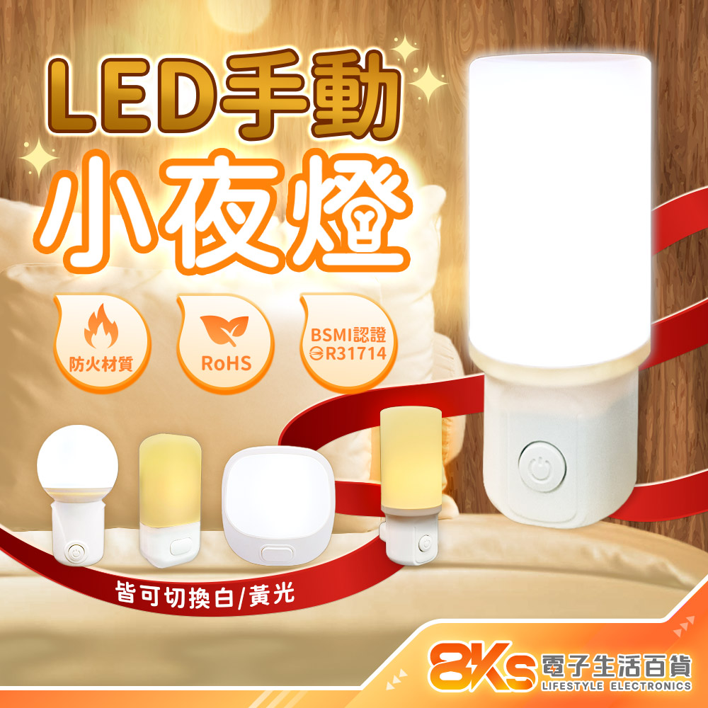 🌟明家LED手動小夜燈,獨家設計白光與暖黃光自由切換,可選擇您舒適的光源。