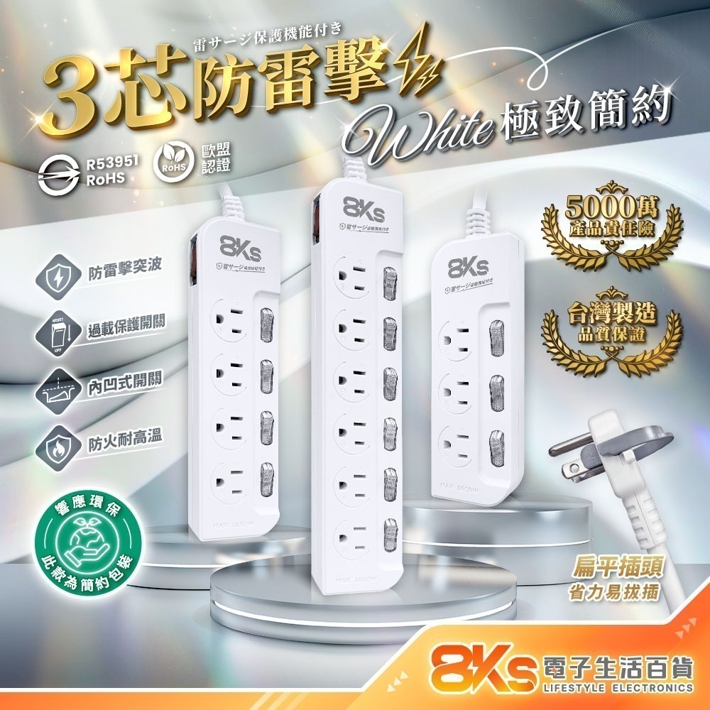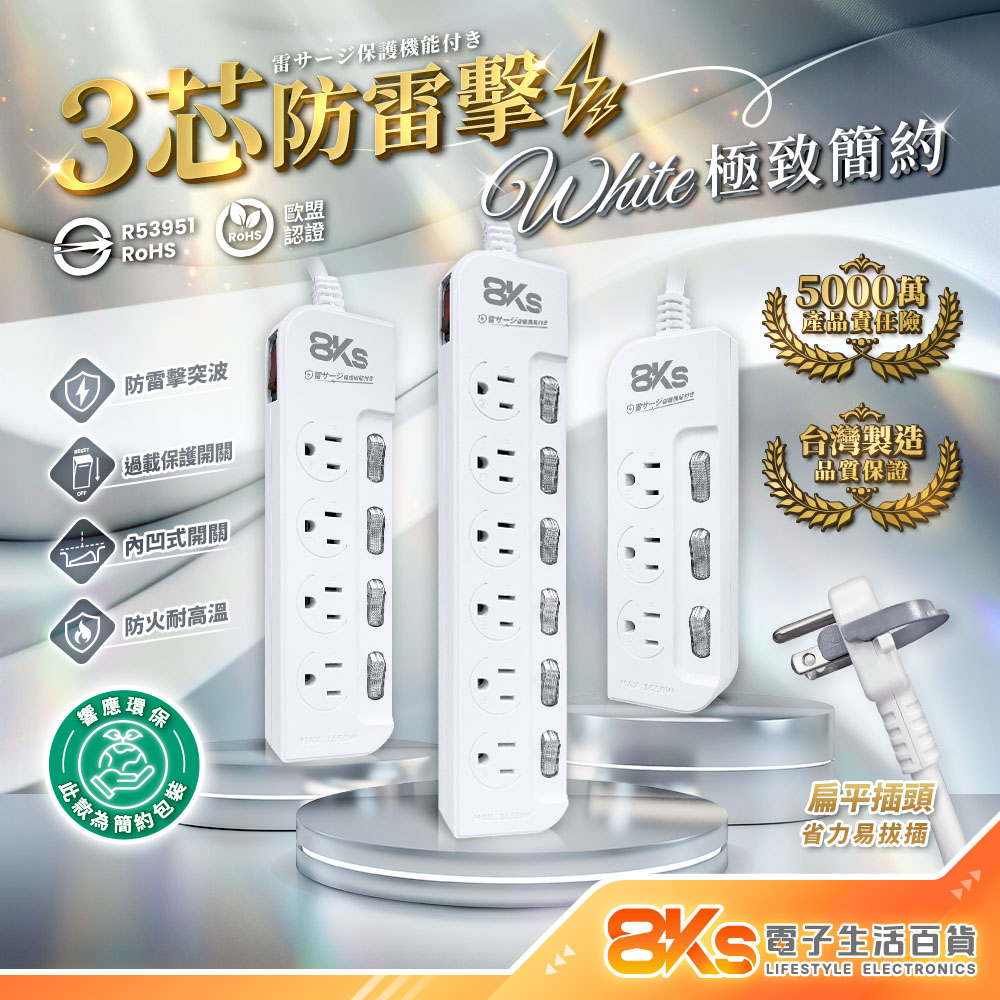 防雷擊延長線(4開3插、5開4插、7開6插)