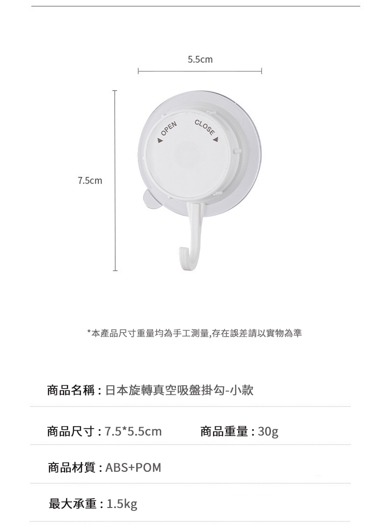 2.承重力會因為安裝的表面不同而有些微差異,例如安裝於玻璃上的承重力大於安裝於金屬平面上.