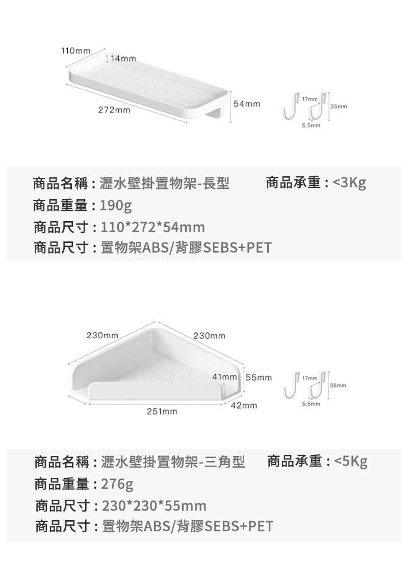 最大承重:3kg(長型) , 5kg(三角型)