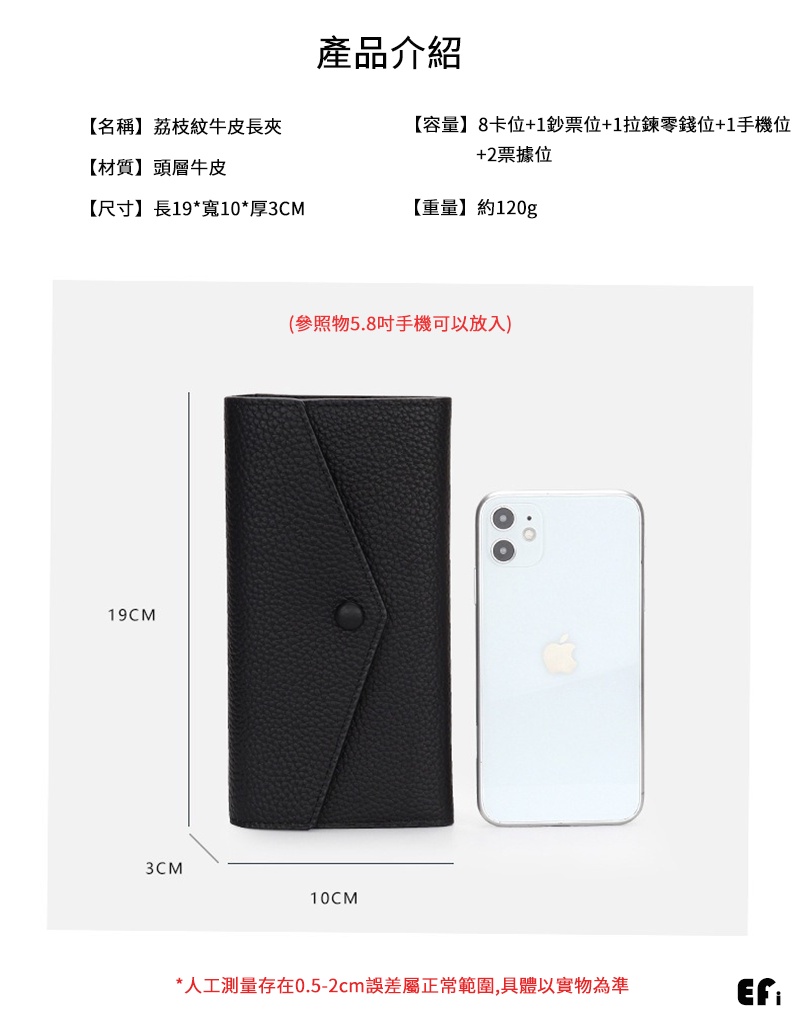 『商品結構』:8卡位+1鈔票位+1拉鍊零錢位+1手機位+2票據位