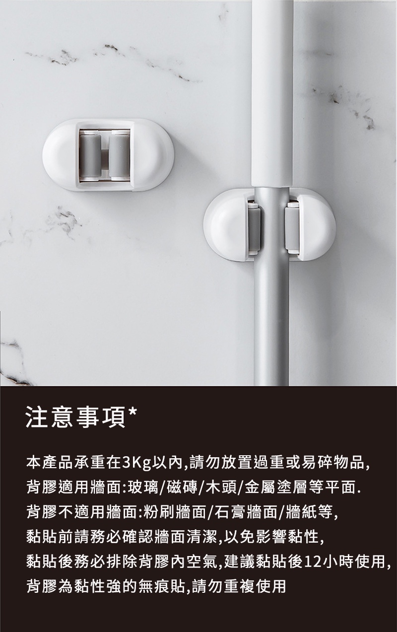 7.黏貼時請確認好角度與位置再撕膜黏貼,建議可先將背膠卡扣上產品,再撕膜對好角度黏貼至牆上,如因未對好角度或者牆面未清潔乾淨,致背膠無法使用,恕無法「免費」提供背膠。有需購買背膠可至本賣場搜尋「單賣無痕貼」。