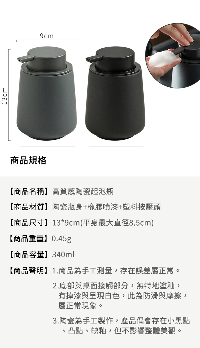 『商品材質』:陶瓷瓶身+橡膠噴漆+塑料按壓頭