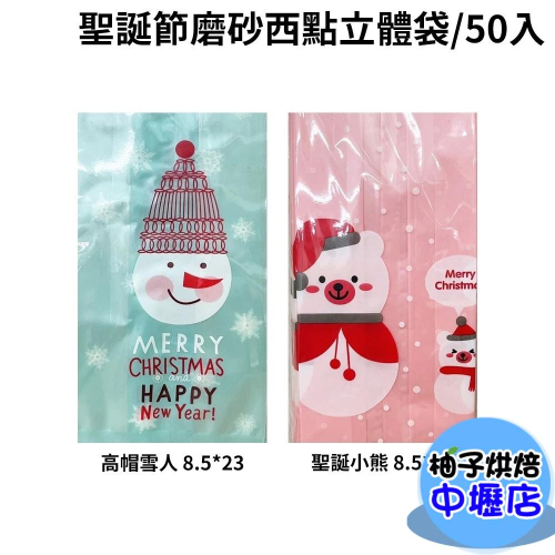 8.5*23磨砂西點立體袋-高帽雪人/聖誕小熊 (50入)包裝袋 禮物袋 聖誕節 聖誕小物 禮物盒 聖誕節包裝 點心袋