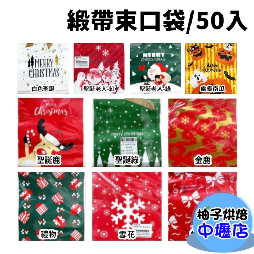 緞帶束口袋-(50入) 包裝 手提袋 禮物袋 束口袋 聖誕節 餅乾袋 糖果袋 西點袋