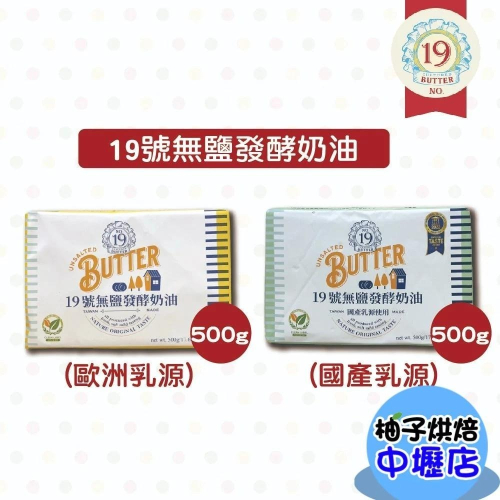 臺灣 19號無鹽發酵奶油 500g 無加鹽 奶油(國產乳源) 台灣19號奶油 無鹽奶油 發酵奶油(冷凍)無鹽發酵奶油