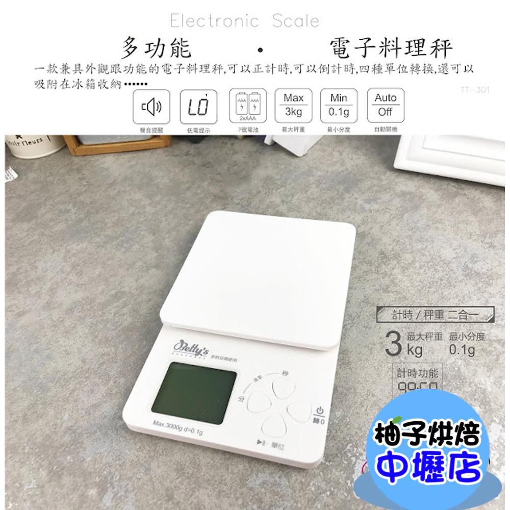 Betty's焙蒂絲 3KG電子秤(0.1g到3kg)電子秤 磅秤 料理秤 廚房秤(不含電池)多功能電子秤 計時器