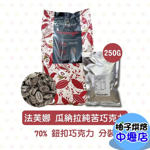 法芙娜 瓜納拉純苦巧克力鈕扣 70% 頂級純苦巧克力鈕扣 250g 蛋糕 內餡 調溫巧克力 巧克力鈕扣