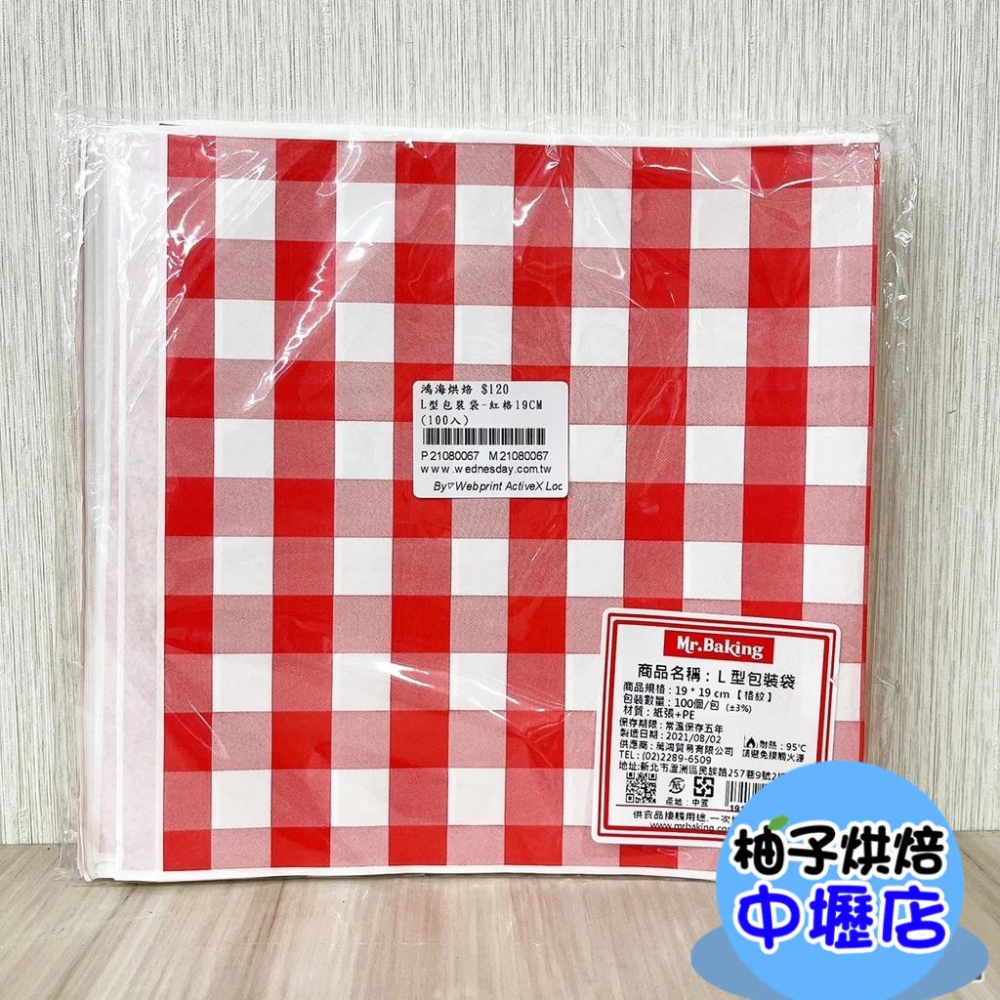 【柚子烘焙材料】L型包裝袋-紅格20CM (100入) 漢堡 貝果 三明治 吐司 甜甜圈 雞蛋糕 紅豆餅