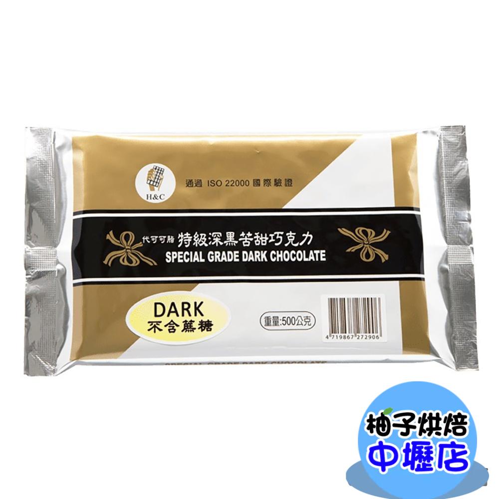【柚子烘焙材料】H&C正慧 正香軒 代可可脂 特級500g 深黑苦甜 巧克力片 磚型巧克力 巧克力磚 不含蔗糖 烘焙專用