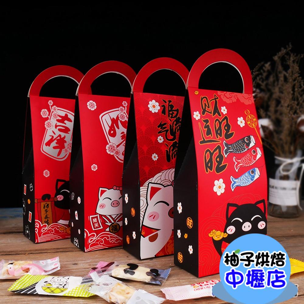 【柚子烘焙材料】原創新年款招財豬烘焙點心手提袋 烘焙袋食品包裝袋 甜點 餅乾糖果 牛軋糖 手提袋 烘焙包裝袋 (10入)