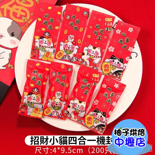 【柚子烘焙材料】原創新年款烘焙點心包裝袋 4×9.5cm (200入)包裝袋 糖果 甜點 餅乾 牛軋餅袋 紅色喜氣 節慶