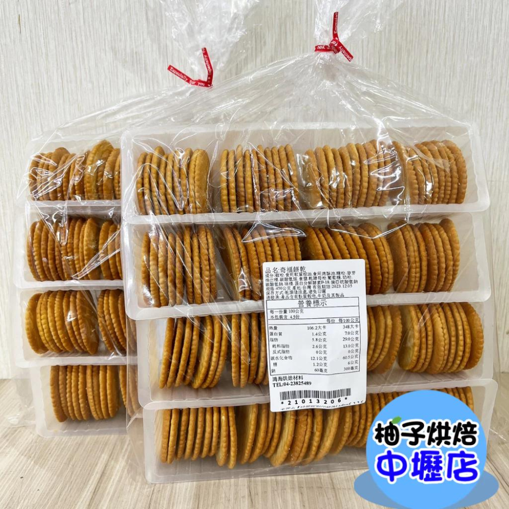 品名:奇福餅乾 成份:麵粉、食用軟質棕油、食用烤酥油、糖粉、麥芽抽出精、碳酸氫安、食鹽、乾酵母粉、葡萄糖、奶粉、碳酸氫鈉、味精、 蛋白分解酵素P-18、偏亞硫酸氫鈉 規格:450公克 產地:台灣 保存方式:乾燥陰涼處,避免日曬 過敏原:產品含有麩質穀物、牛奶及其製品 *****下單請注意***** 📦 包裹規格限制: ◆超商取貨限重五公斤以內(含包材)。 提醒您若購買1公斤的商品,超取最多只能購買四包喔! ◆下單後若商品無缺貨1~3天內會出貨。(特殊情況除外) ◆黑貓宅急便 重量限制20公斤以內~ 一般包裹尺寸150cm為上限/低溫包裹尺寸120cm為上限。 ◆開箱貨品時請錄影,有任何問題可以確保雙方權益!!!! 🔔 任何問題歡迎 "聊聊" ◆實體店面:柚子烘焙材料 中清店 地址:台中市北區中清路一段292號 永春店 地址:台中市南屯區永春東路800號 中壢店 地址:桃園市中壢區延平路448號1樓
