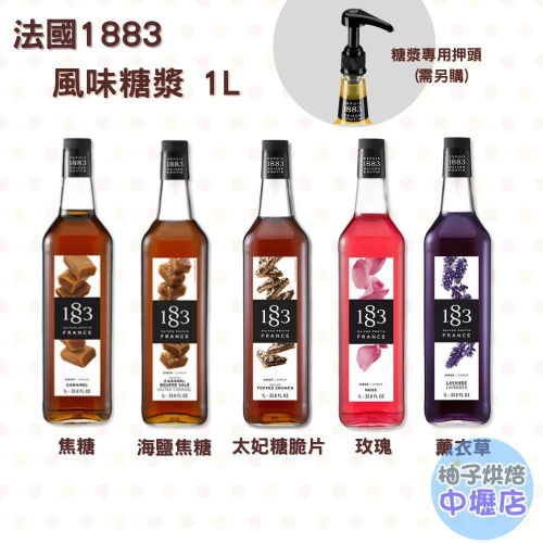 【柚子烘焙材料】法國1883 風味糖漿 1L 海鹽焦糖 薰衣草 焦糖 玫瑰 太妃糖脆片 糖漿押頭 定量壓頭 飲品 咖啡