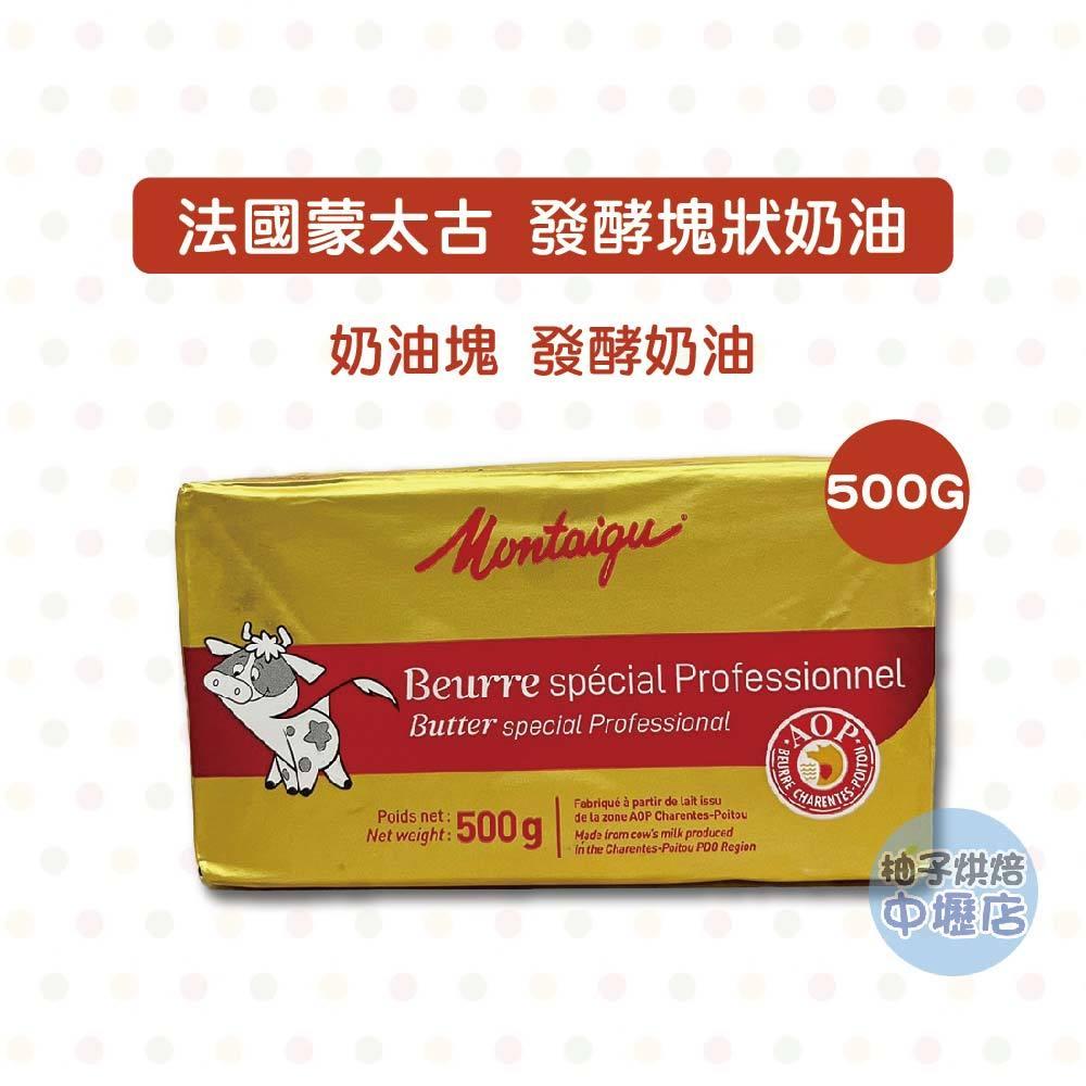 【柚子烘焙材料】法國 蒙太古 Montaigu 發酵塊狀奶油 500G(冷凍)發酵奶油 塊狀奶油 法式料理 烹飪 奶油塊