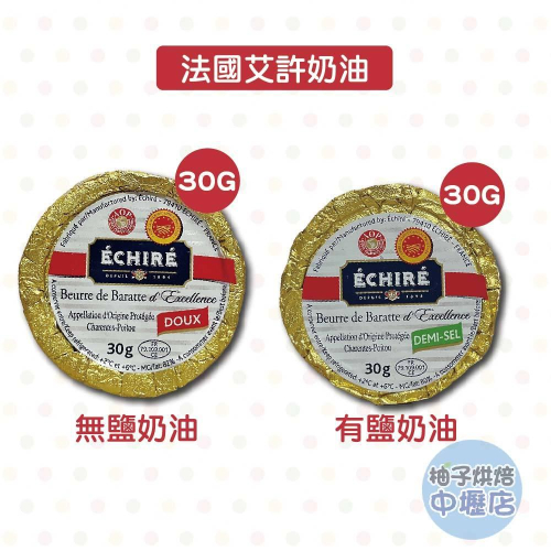 【柚子烘焙材料】法國 艾許奶油 含鹽/無鹽 30g( 原包裝、需冷藏) 法國 艾許 頂級手工奶油 奶油 30公克