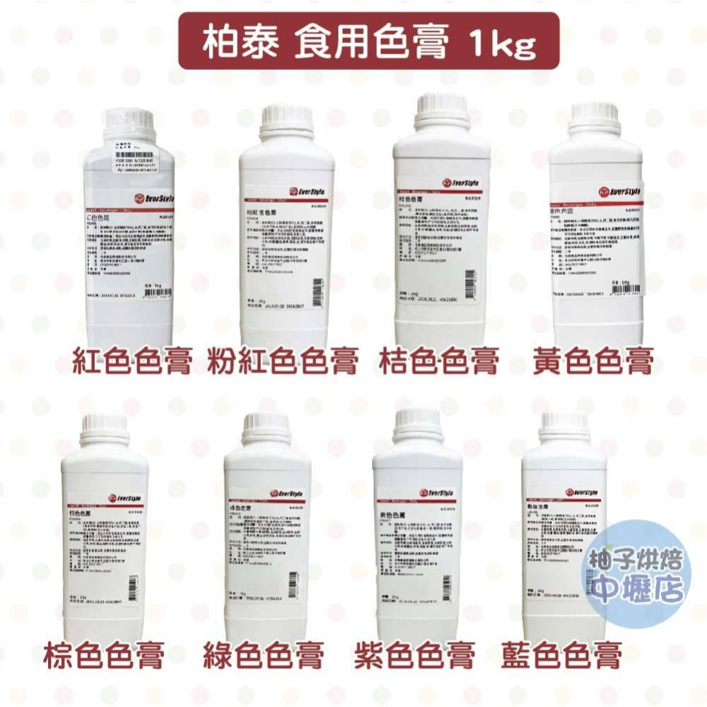 【柚子烘焙材料】柏泰 粉紅色 紅色 桔色 紫色 綠色 棕色 黃色色膏 1kg 食用色素 食用色膏 烘焙料理 食品添加物