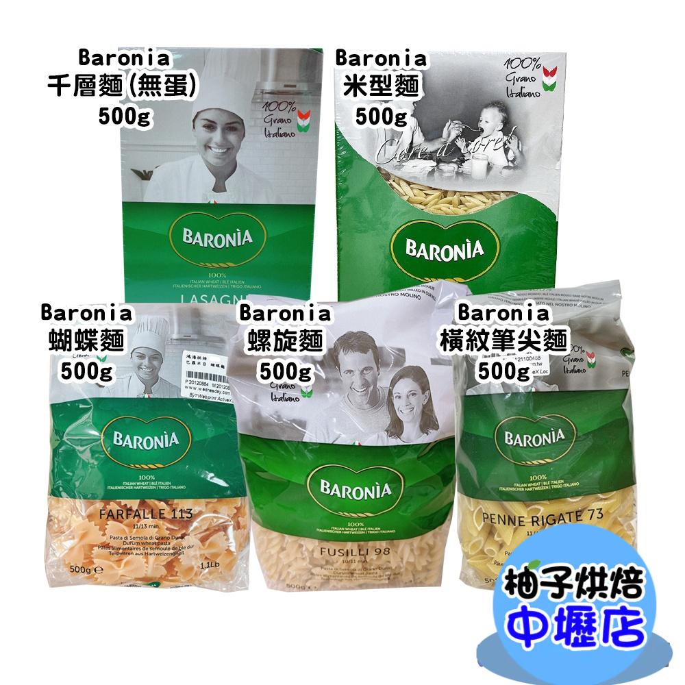 【柚子烘焙材料】Baronia 義大利麵 筆尖麵/螺旋麵/米型麵/千層麵(無蛋)巴羅尼亞 進口麵 蝴蝶麵 筆管麵 螺旋麵