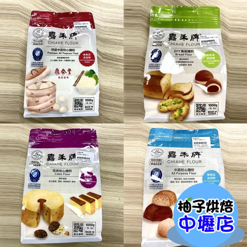【柚子烘焙材料】嘉禾牌麵粉 1KG原廠包裝 低筋麵粉 特級中筋粉心麵粉 黃專高筋麵粉 藍菊花 白菊花 劍蘭中筋麵粉 分裝