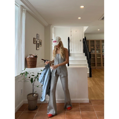 2405A18 金髮歐膩家羅紋排釦細肩長版背心