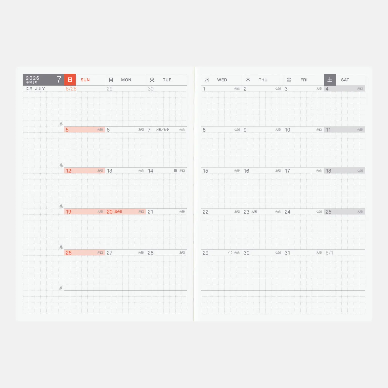4.DayFree:無日期手帳,日文版,"月記事+方格筆記"的組合 (週一起始)
