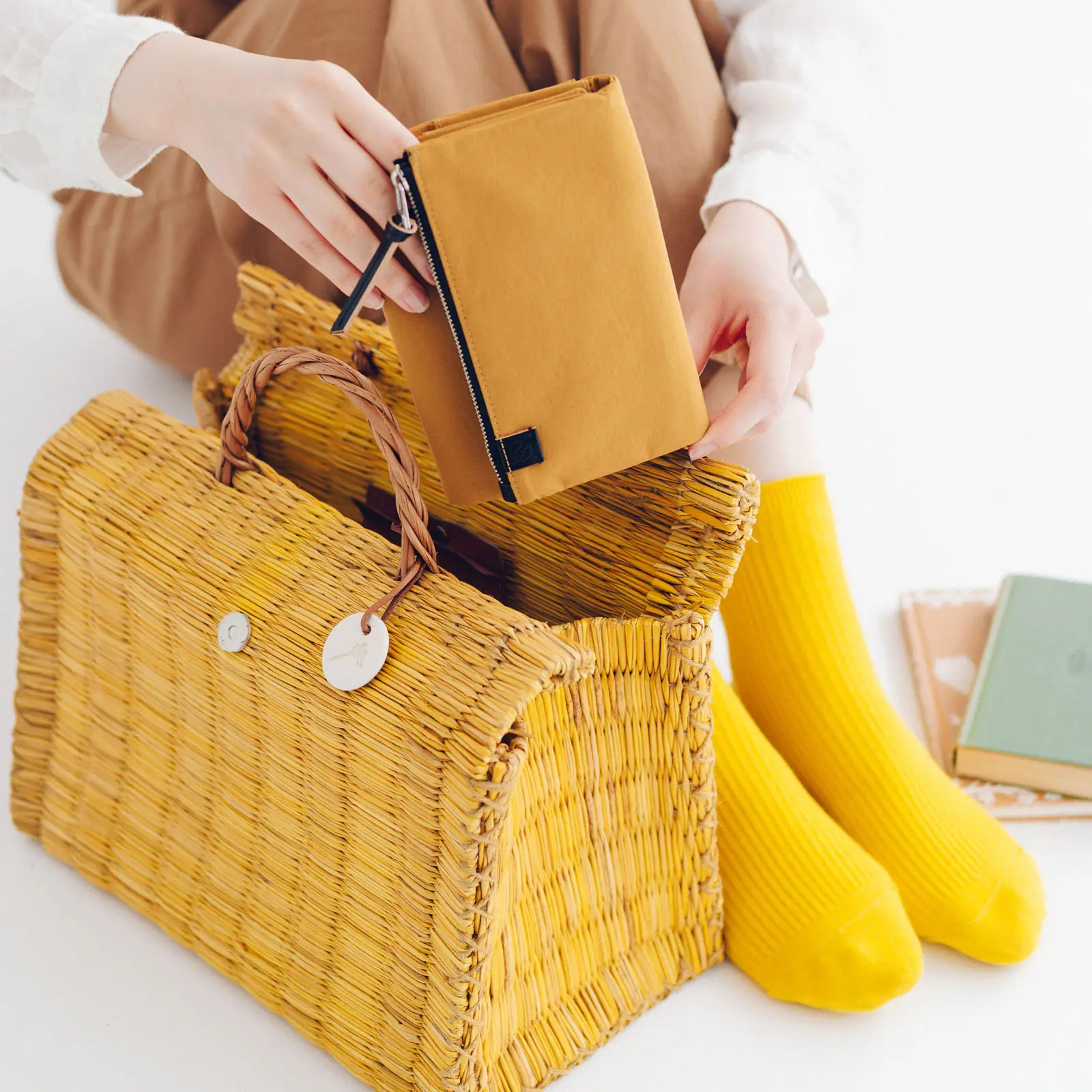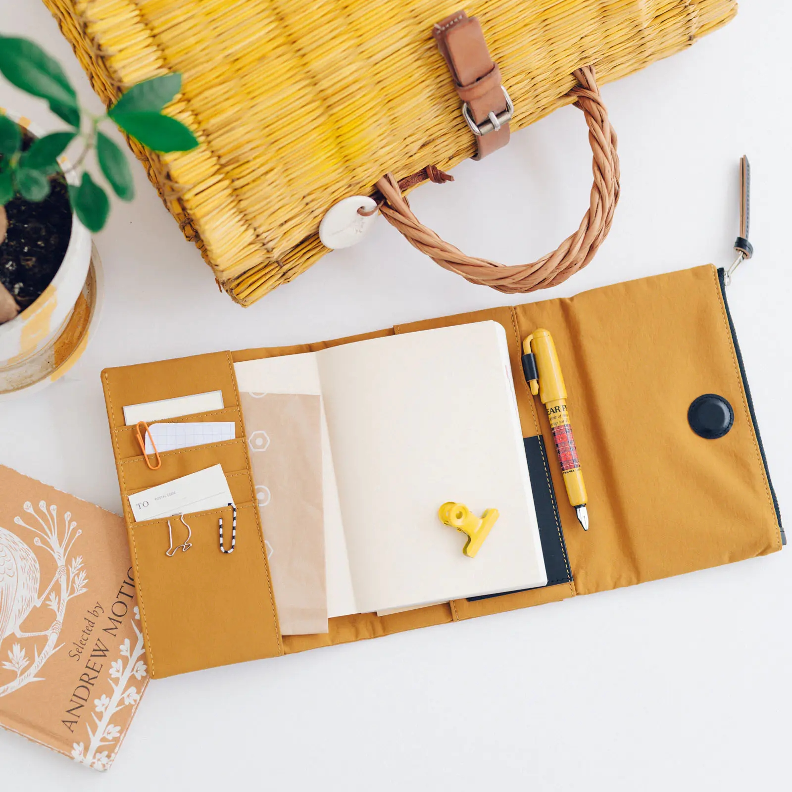 【預購】HOBO日手帳外皮 A6文庫本 tragen 芥末黃 三折式磁吸書衣 多口袋尼龍書皮書衣 HOBO手帳