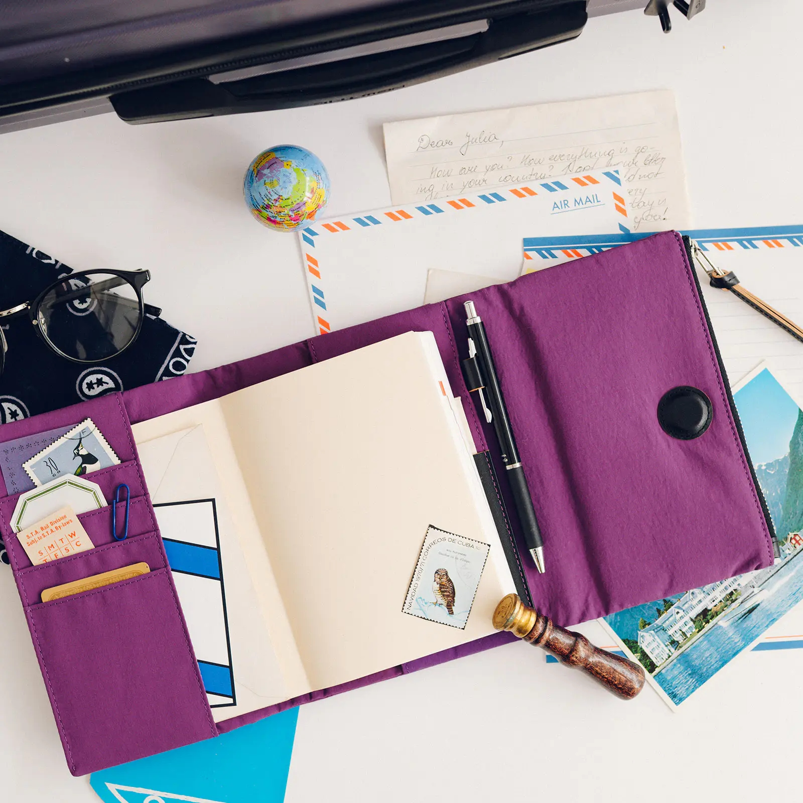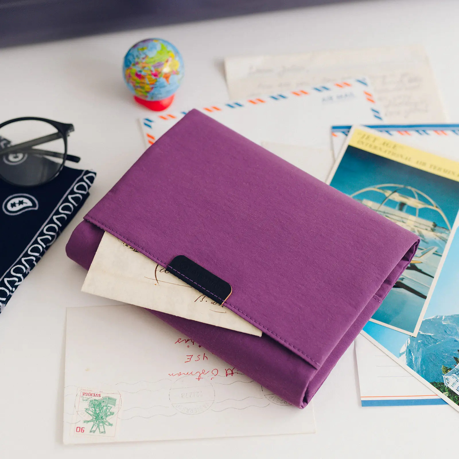 【預購】HOBO日手帳外皮 A6文庫本 tragen 紫色 三折式磁吸書衣 多口袋尼龍書皮書衣 HOBO手帳
