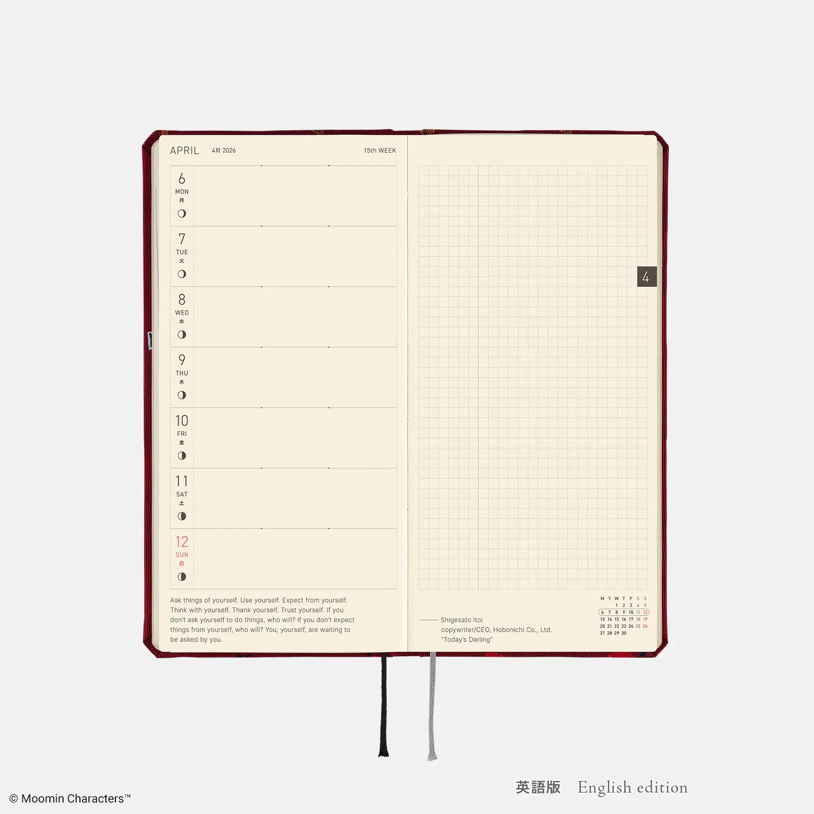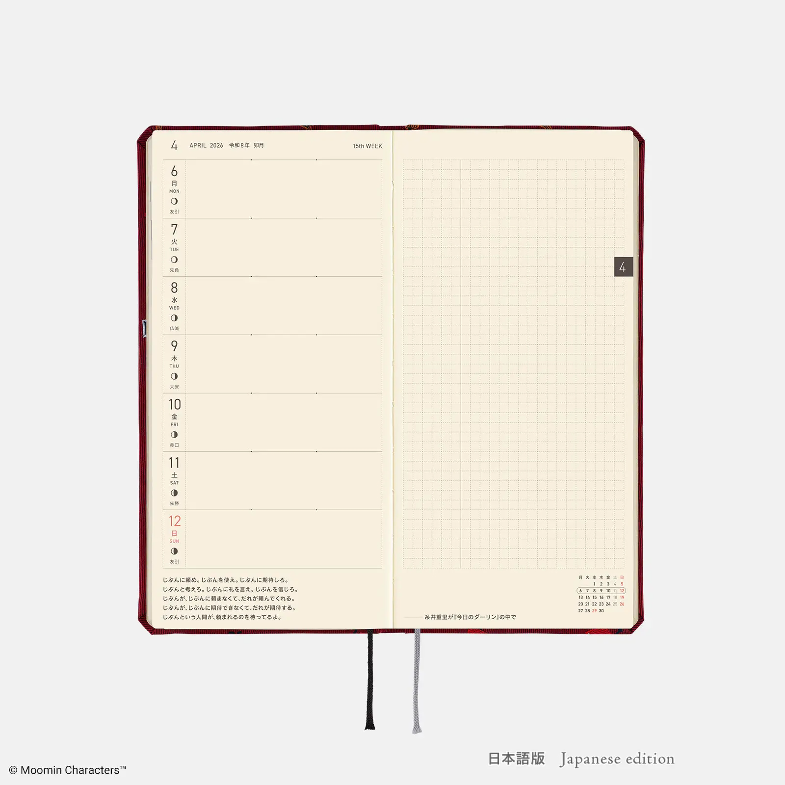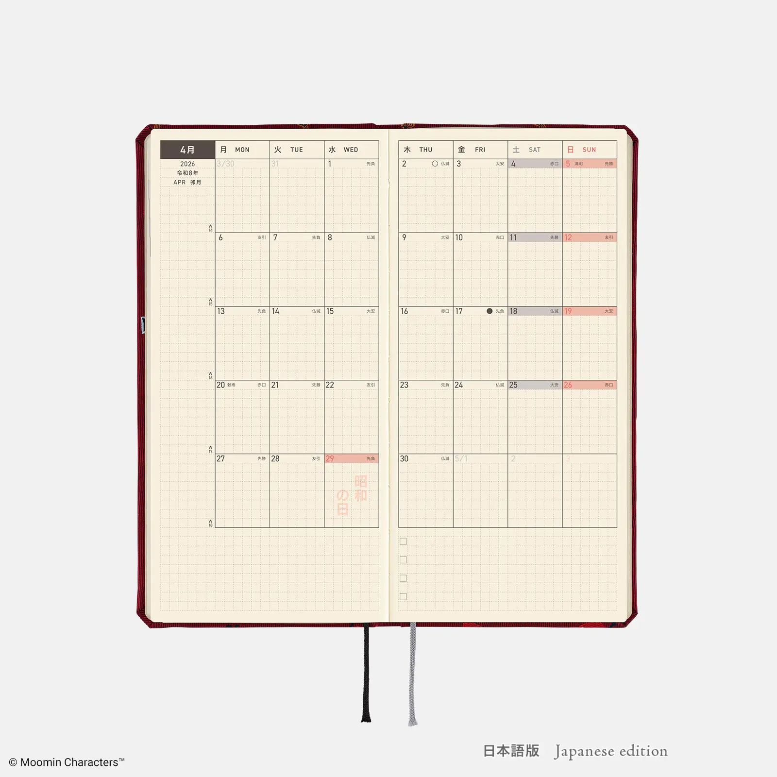 內頁包含:年曆/年間索引頁/月記事/週記事/筆記頁/附錄頁