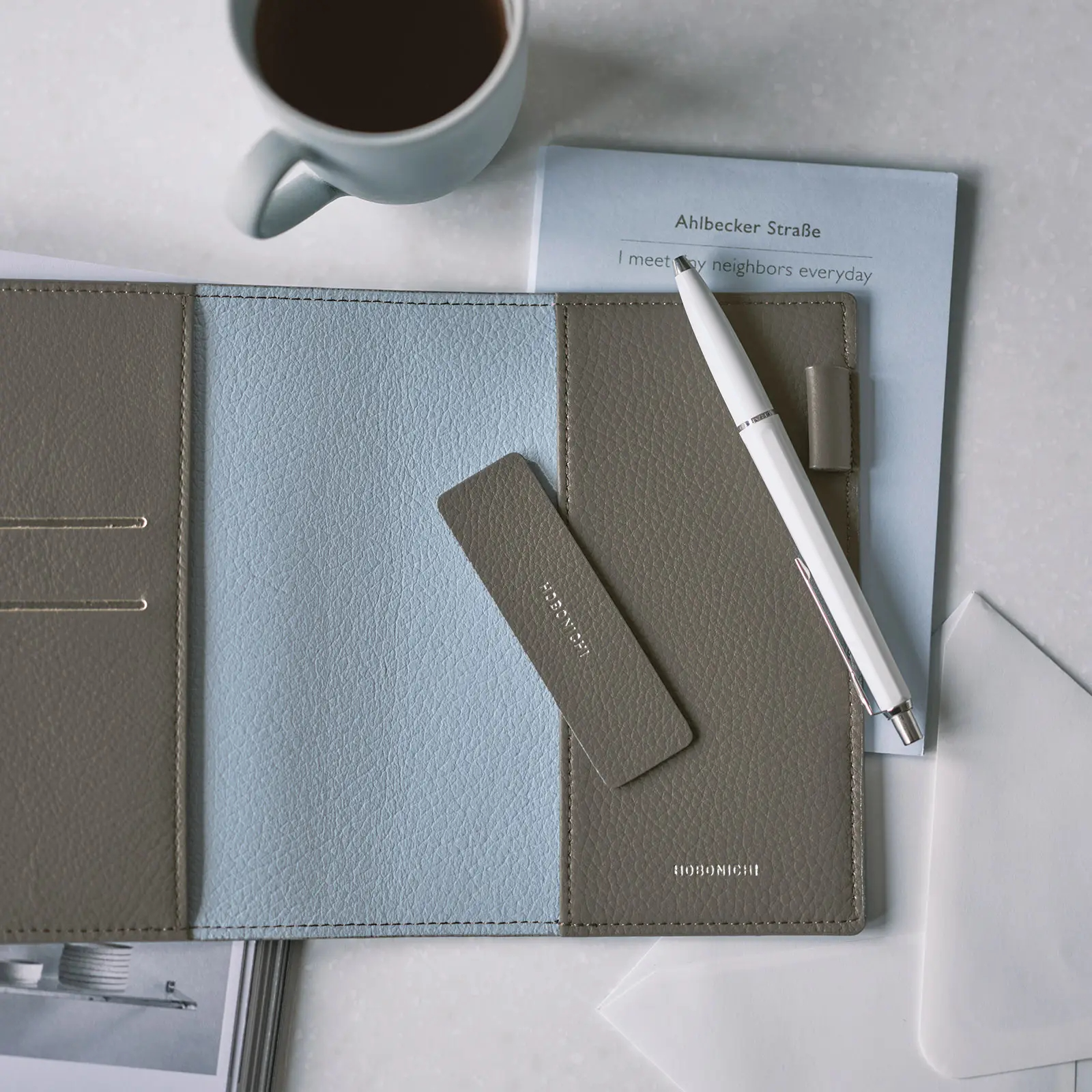 【預購】HOBO日手帳外皮 A6文庫本 Taut 暖灰x淺藍 牛皮書衣 瘦身版 牛革書皮 Hobonichi