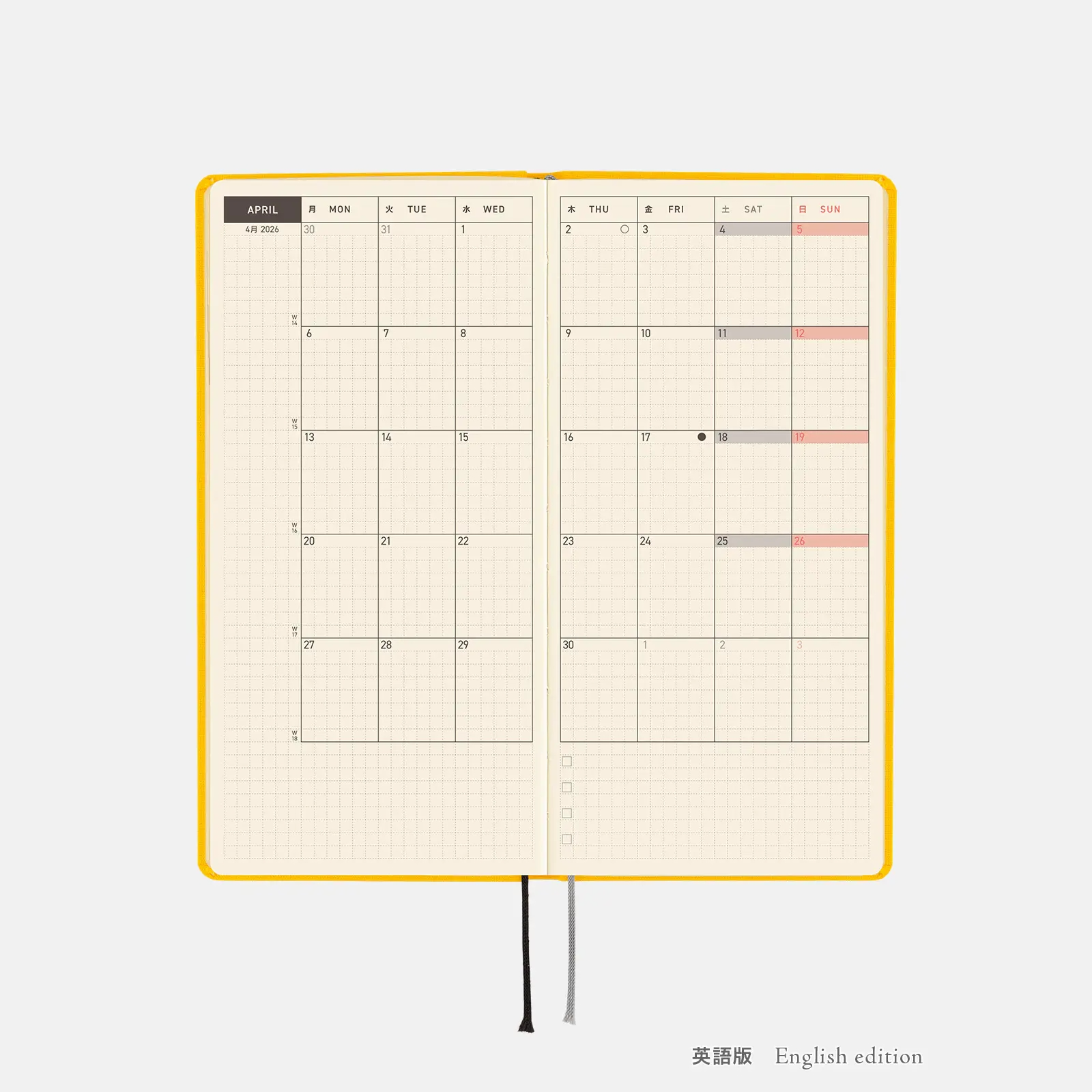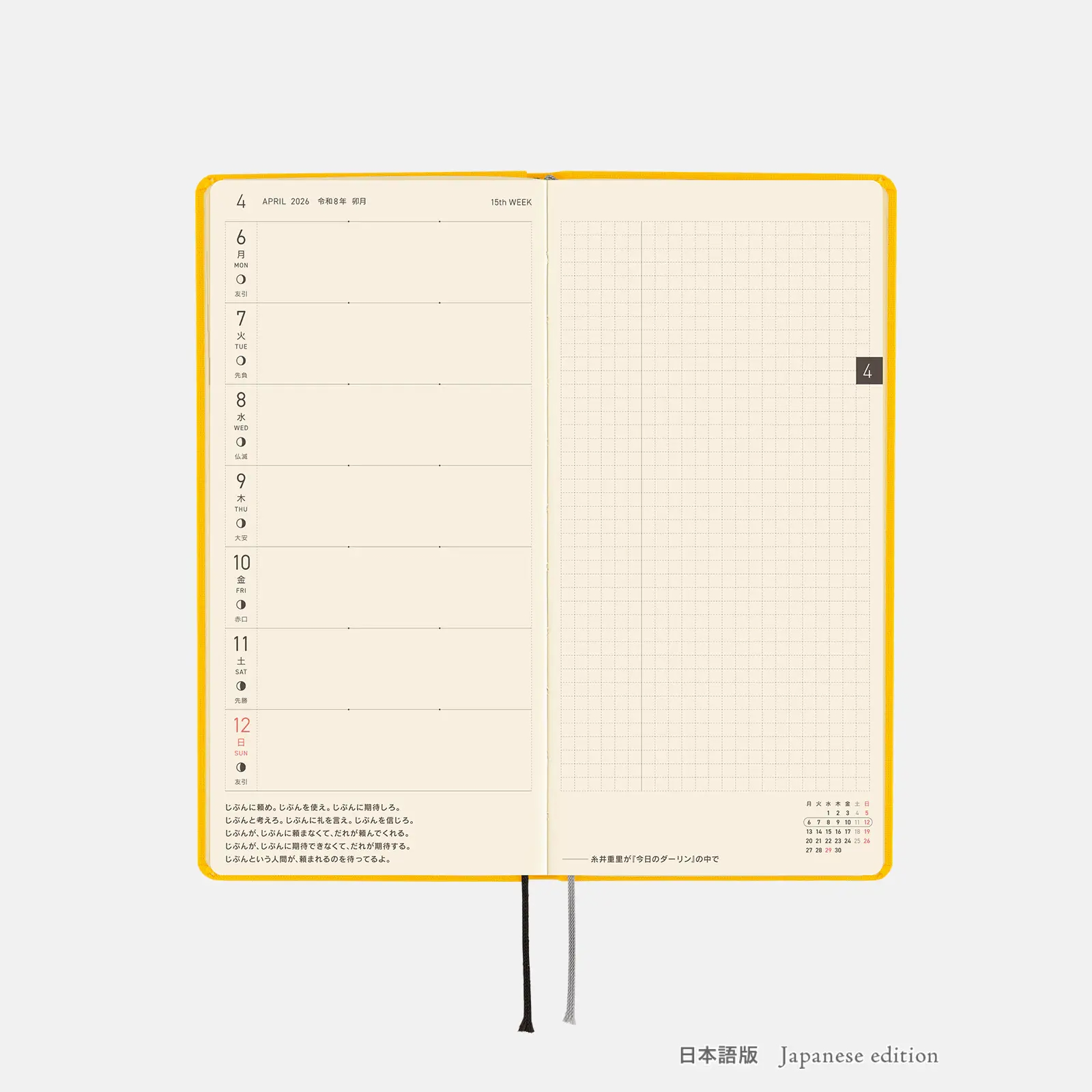 【預購】HOBO日2026年Weeks MEGA Full Moon Yellow 滿月黃 週手帳純色系列 日文/英文版