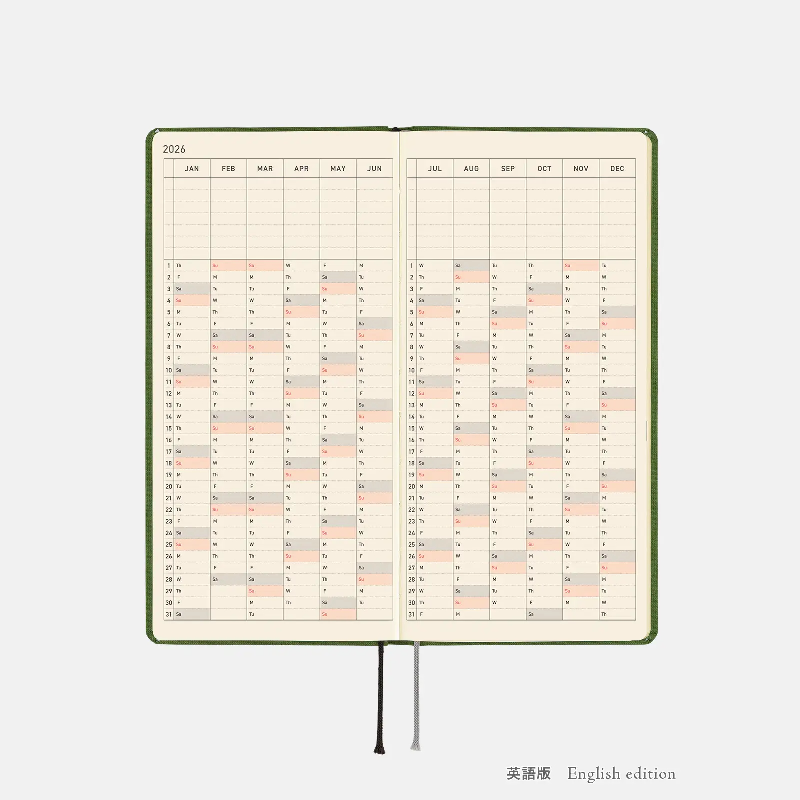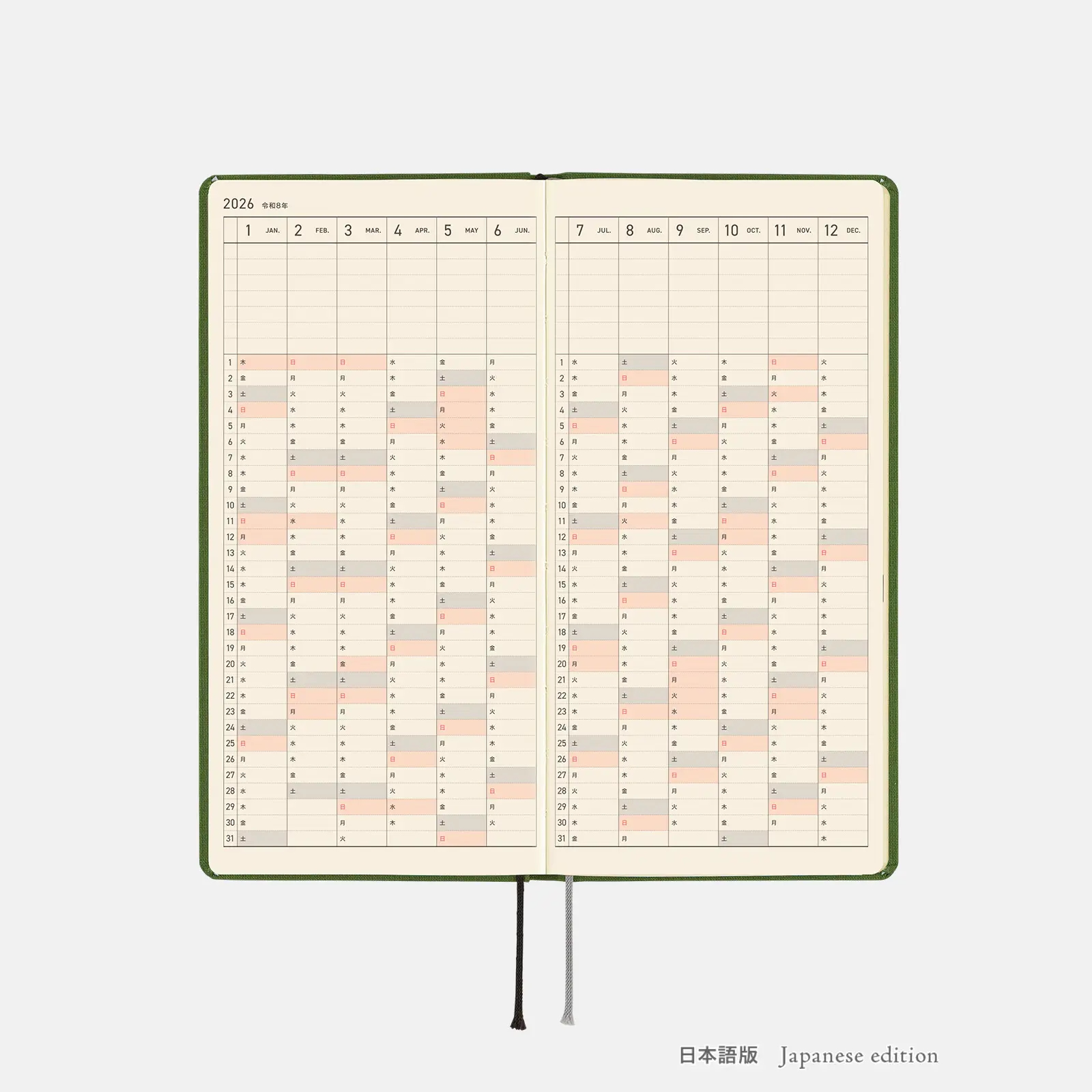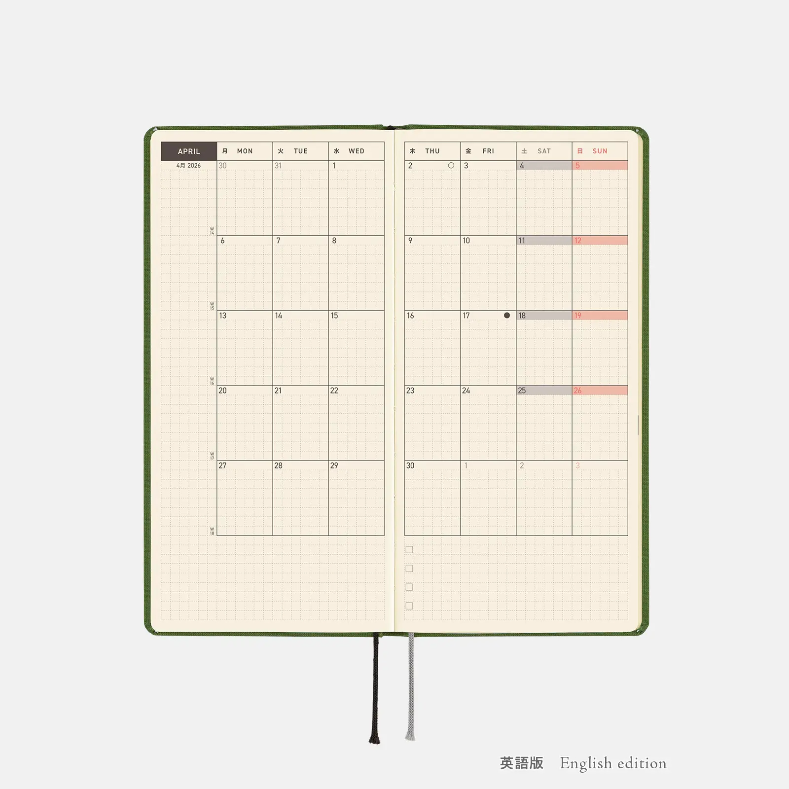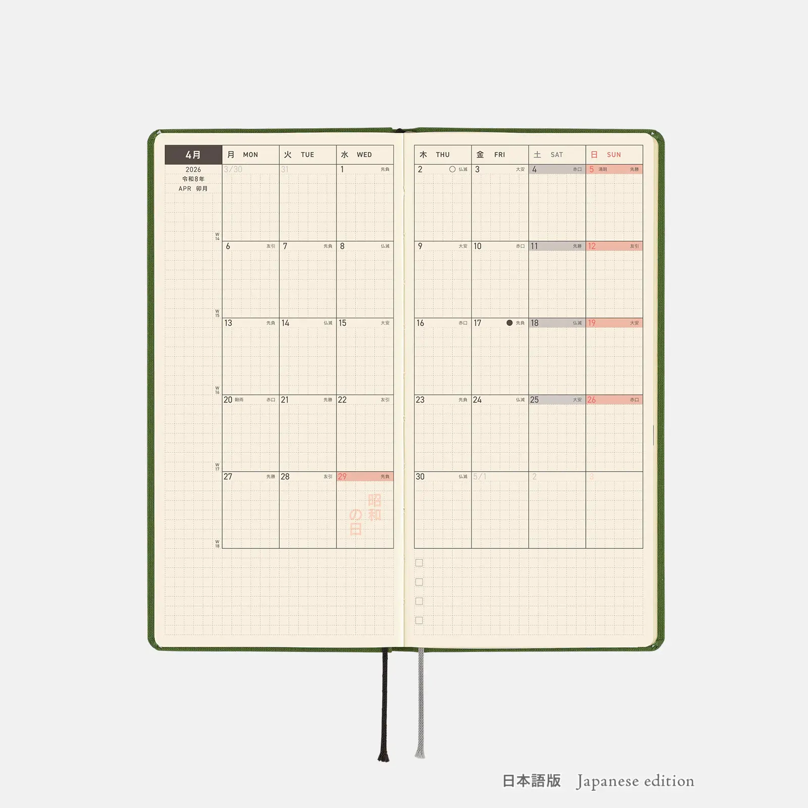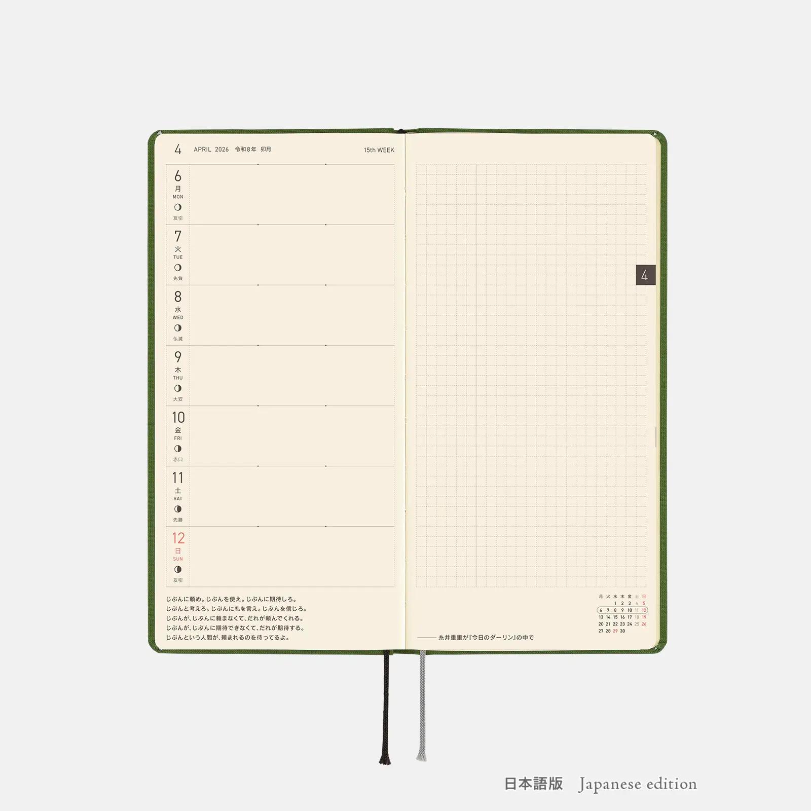 【預購】HOBO日2026年Weeks MEGA Antique Green 古典綠 週手帳 純色系列 日文/英文版