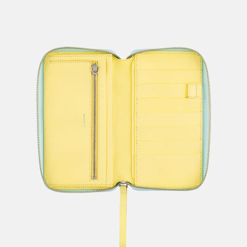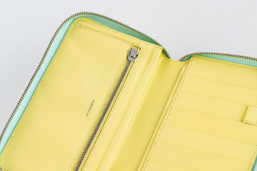 🌸細節設計上,拉鍊頭與內襯皆使用 柔和鵝黃色皮革,