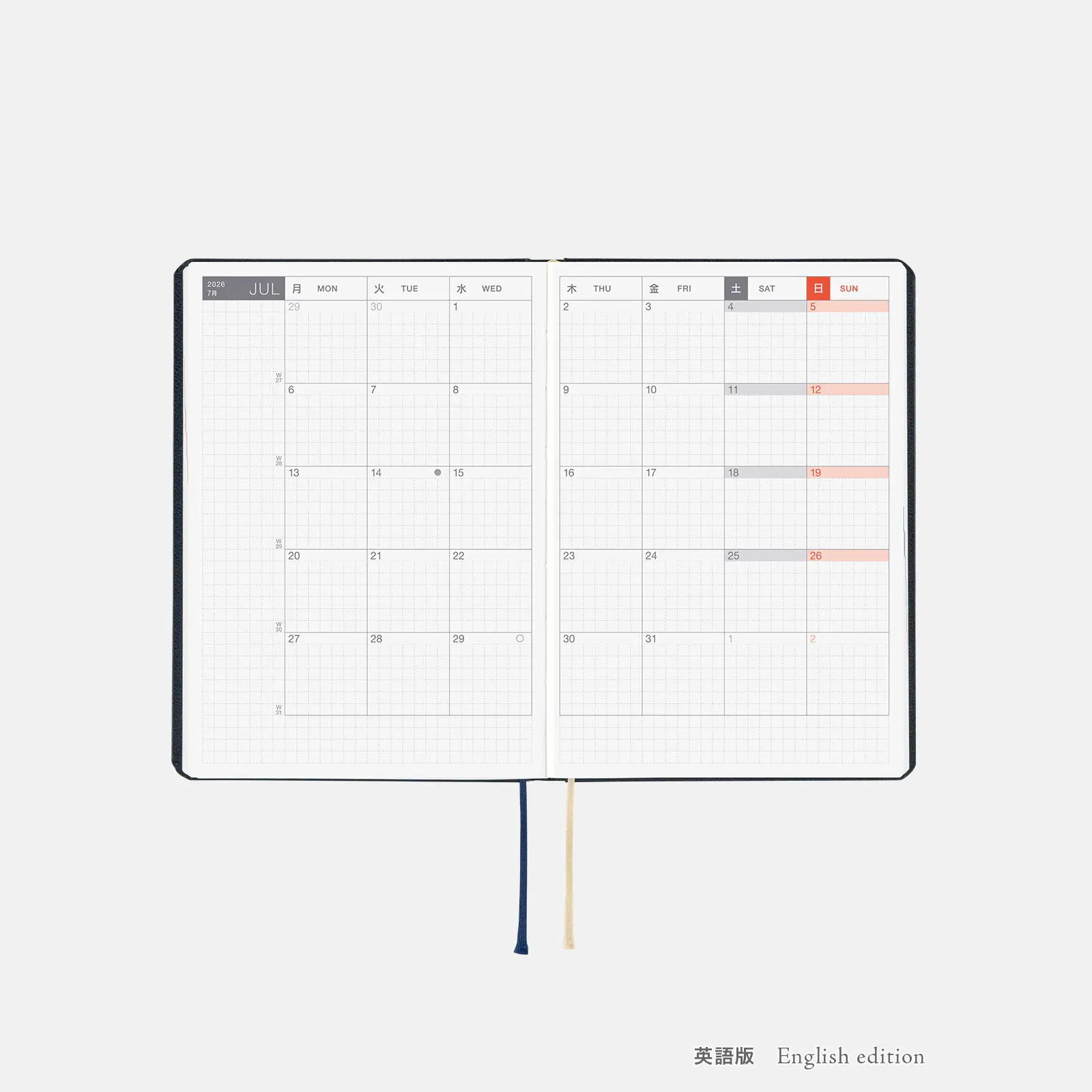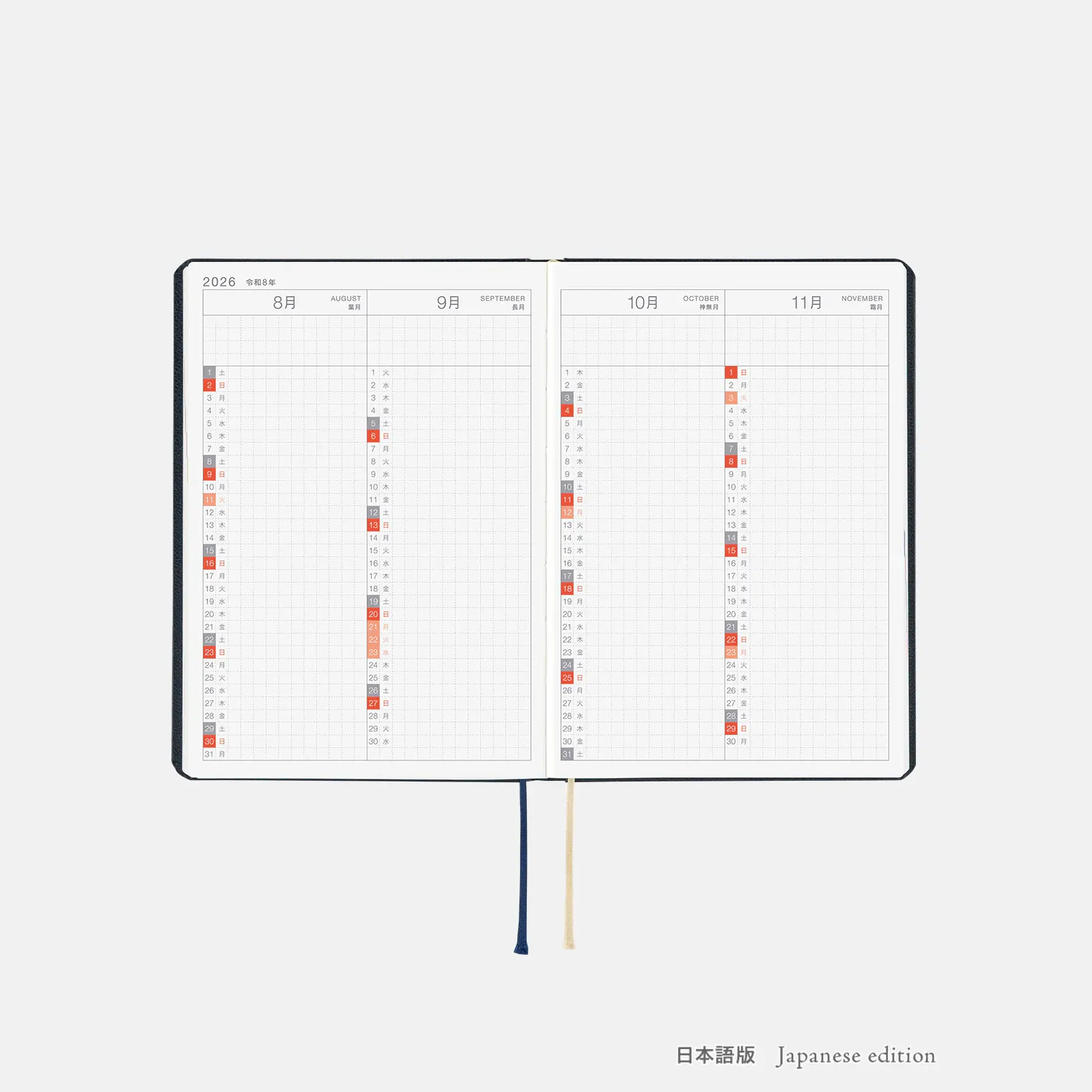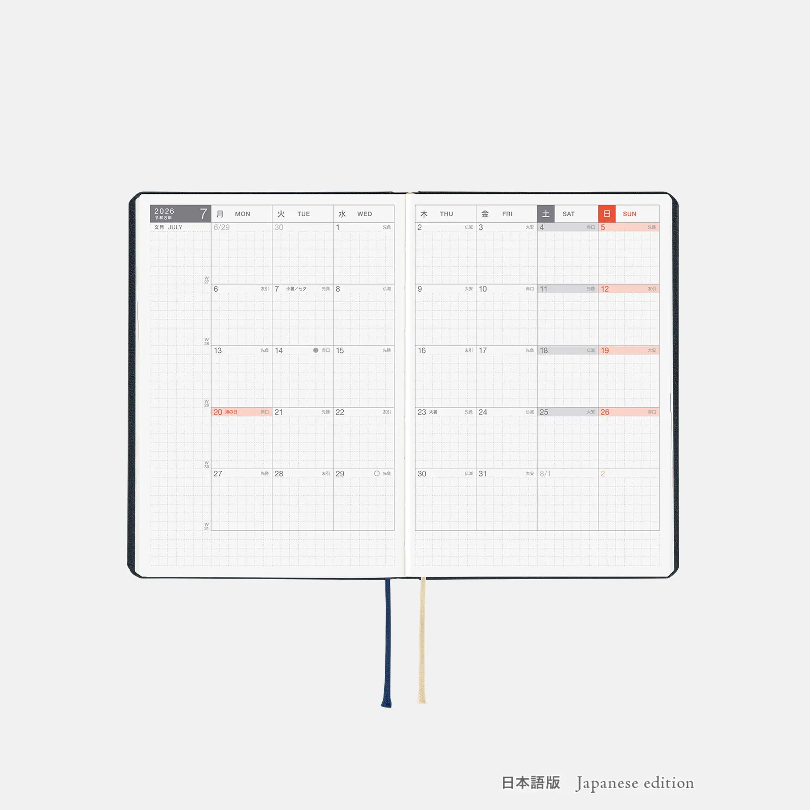 【預購】HOBO日2026年HON手帳書 A6文庫本 Slash 海軍藍 (日文/英文版 週一起始)贈三色筆機器人筆鎮