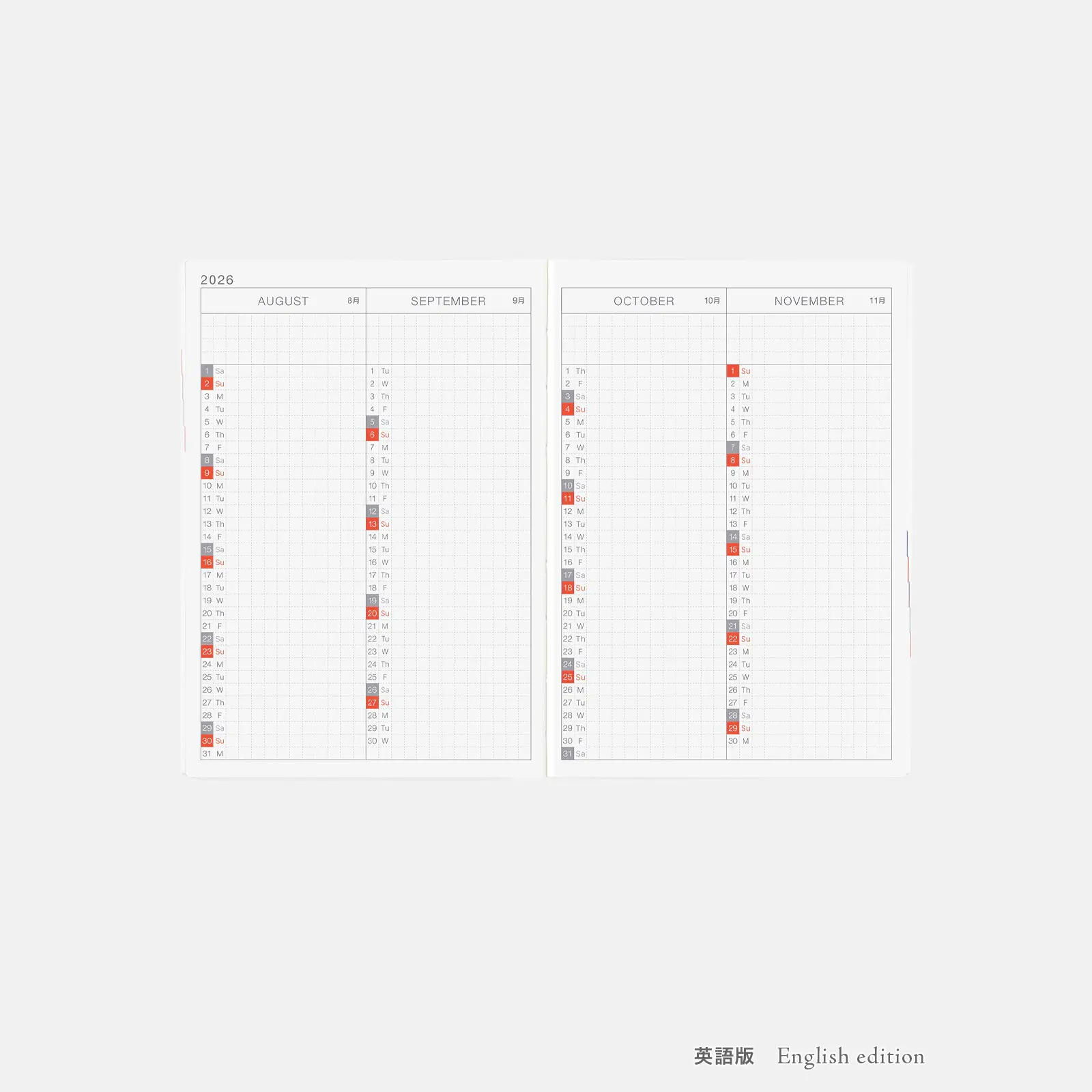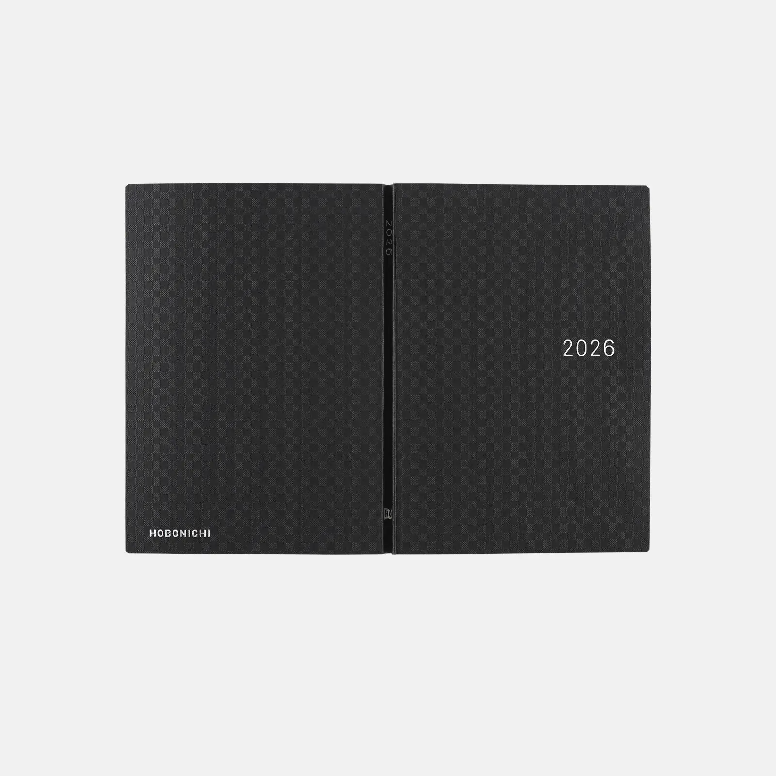 【預購】HOBO日2026年HON手帳書 A6文庫本 黑色格紋 PAPER系列 日文/英文版 贈三色筆機器人筆鎮透明墊板