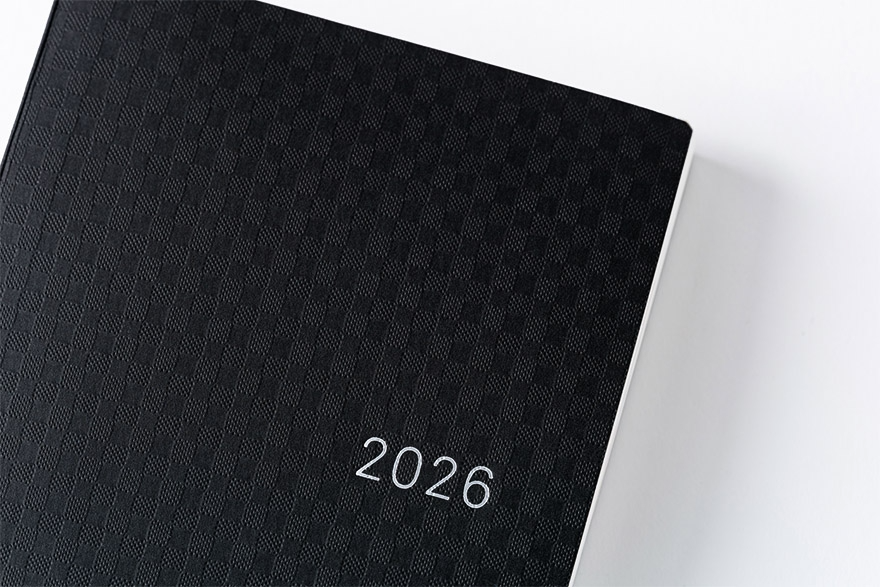乍看之下像是一冊普通的黑色手帳,但仔細一看,整個封面覆蓋著細緻的格紋壓紋。