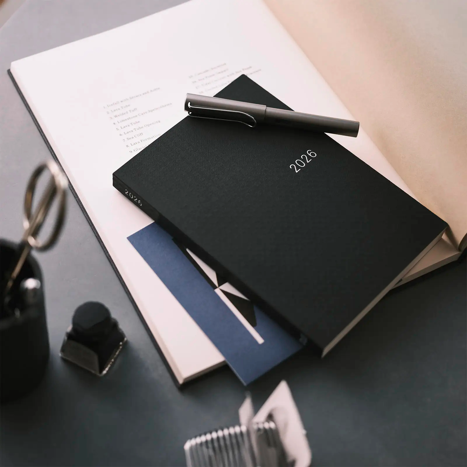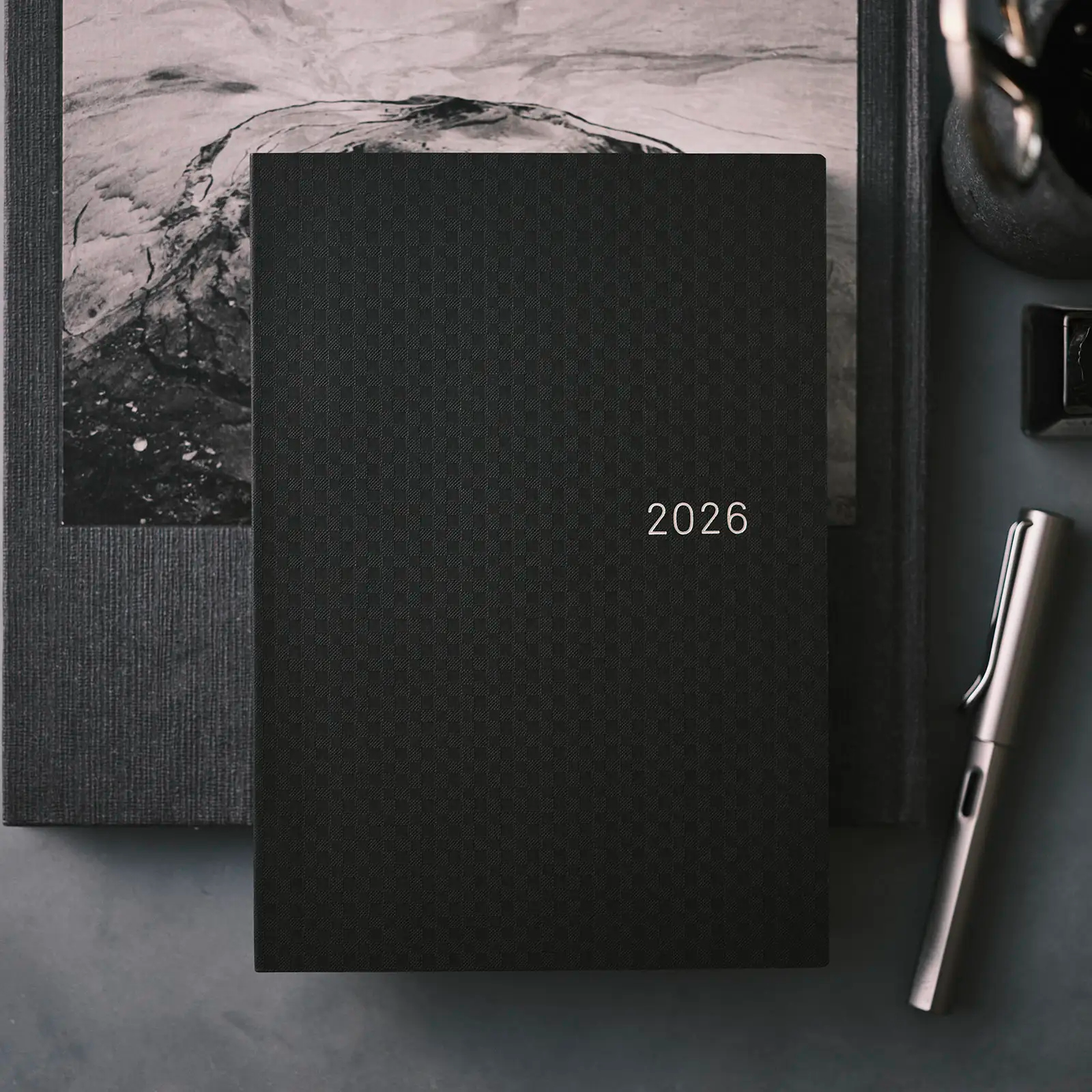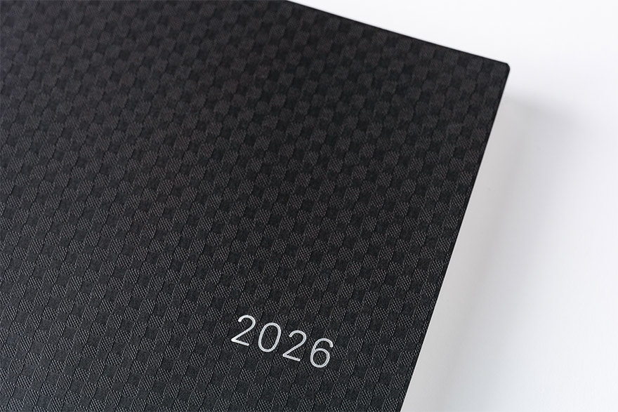 乍看之下像是一冊普通的黑色手帳,但仔細一看,整個封面覆蓋著細緻的格紋壓紋。