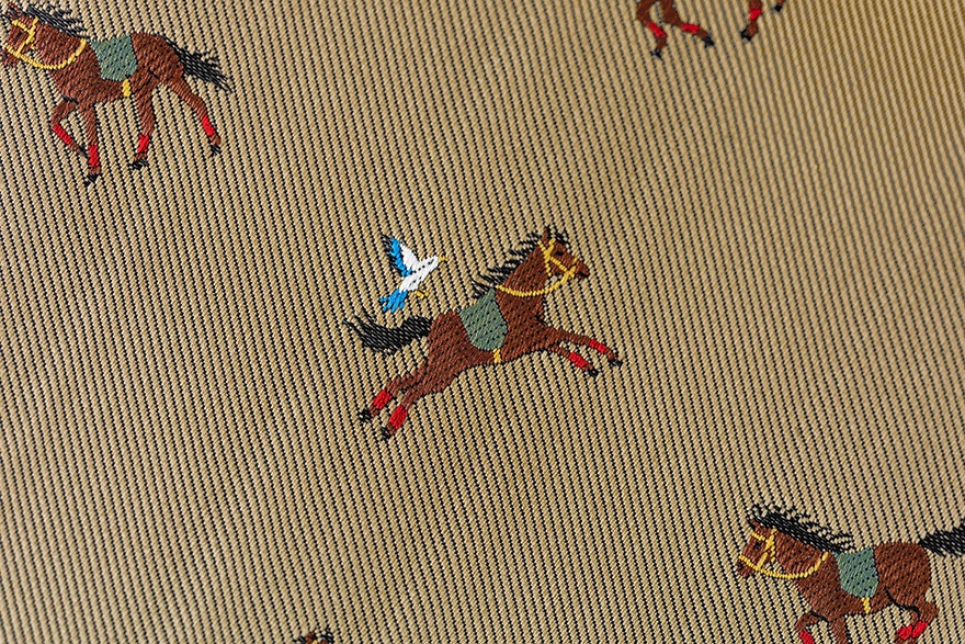 透過領帶織法細緻地表現出悠然自得的馬兒姿態。