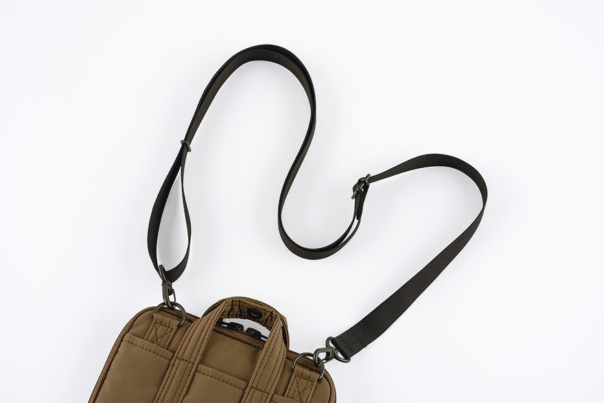 附有可調節長度的黑色肩背帶,方便攜帶,也可依喜好輕鬆拆卸。