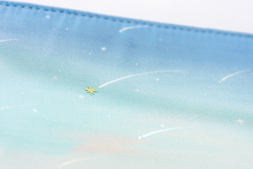 在淡淡水藍色的天空下,砂糖粒般的流星傾瀉而下。